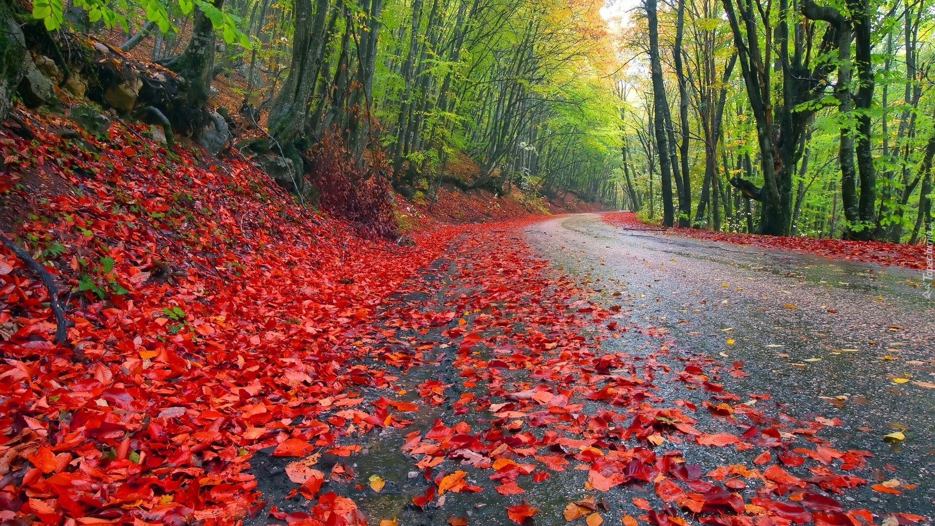 Edytor tapety: Niebo, Droga, Drzewa, Liście, Jesień