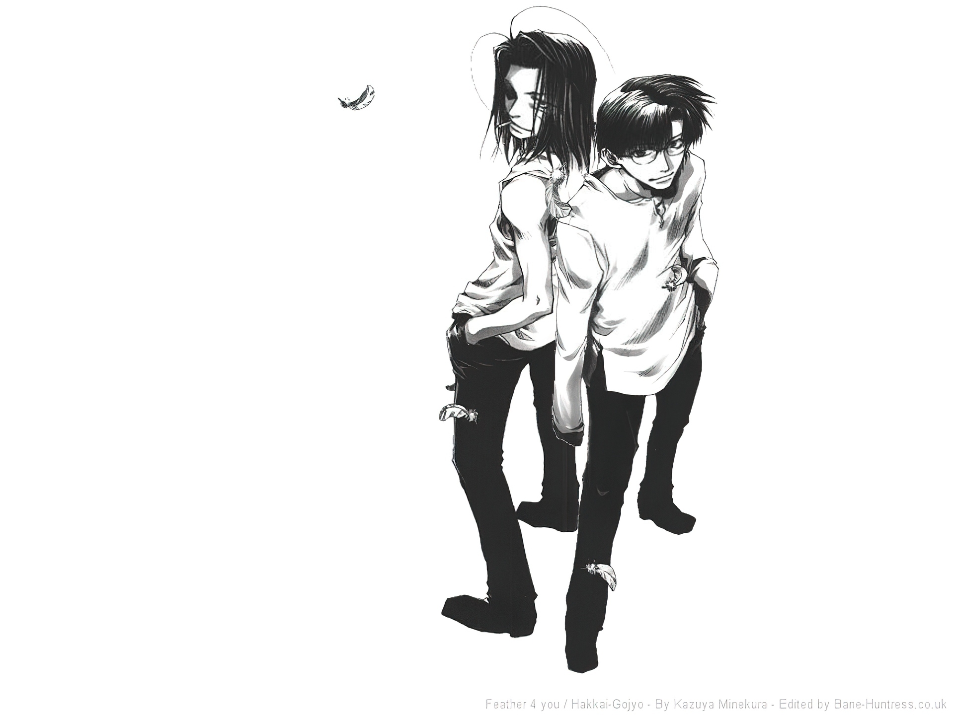Edytor tapety: Saiyuki, ciemne włosy, pióra