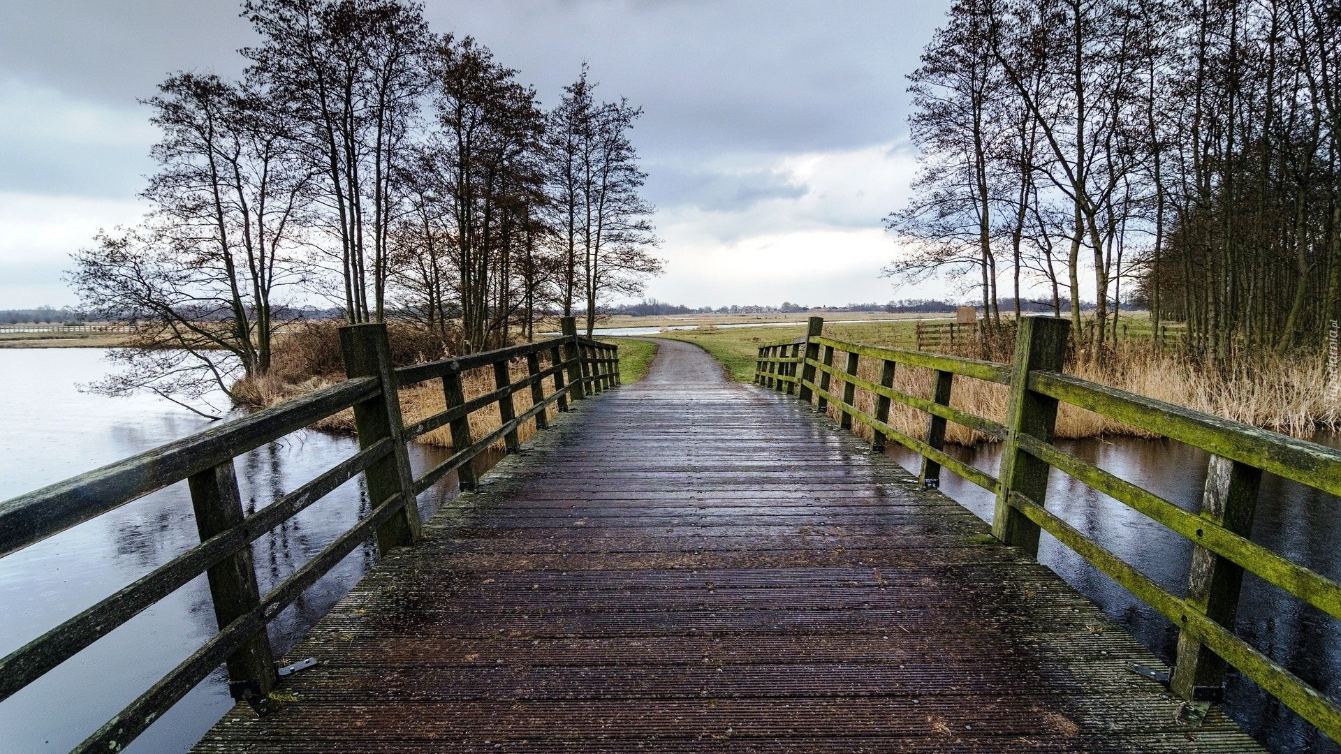 Edytor tapety: Drewniany, Most, Rzeka, Drzewa
