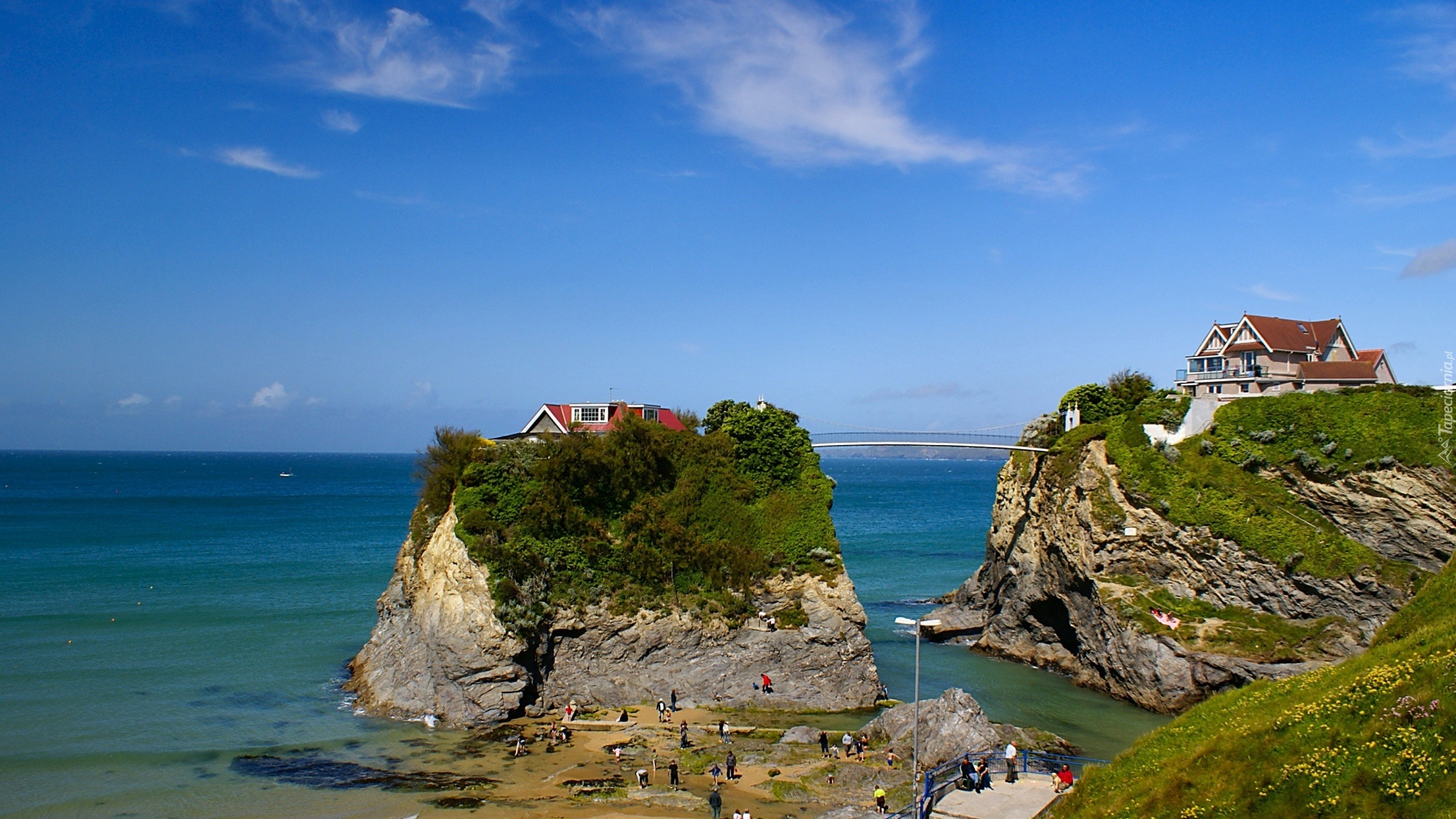 Edytor tapety: Morze, Skały, Plaża, Ludzie, Domy