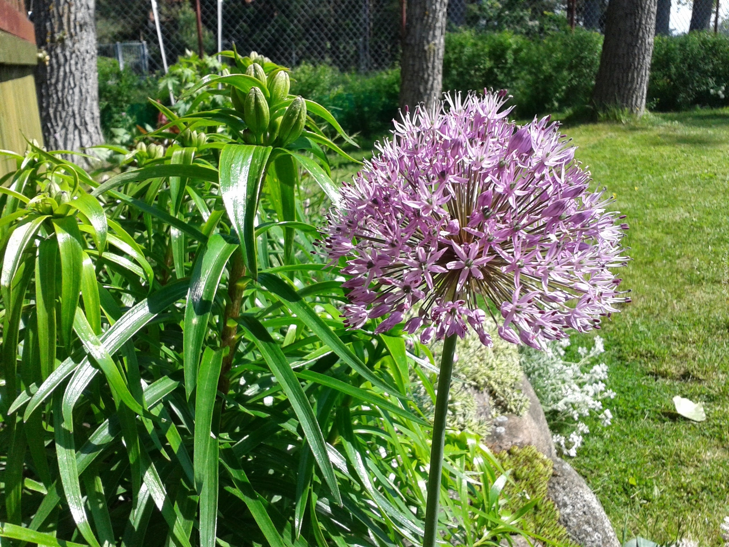 Edytor tapety: Czosnek, Fioletowy, Zielona Trawa