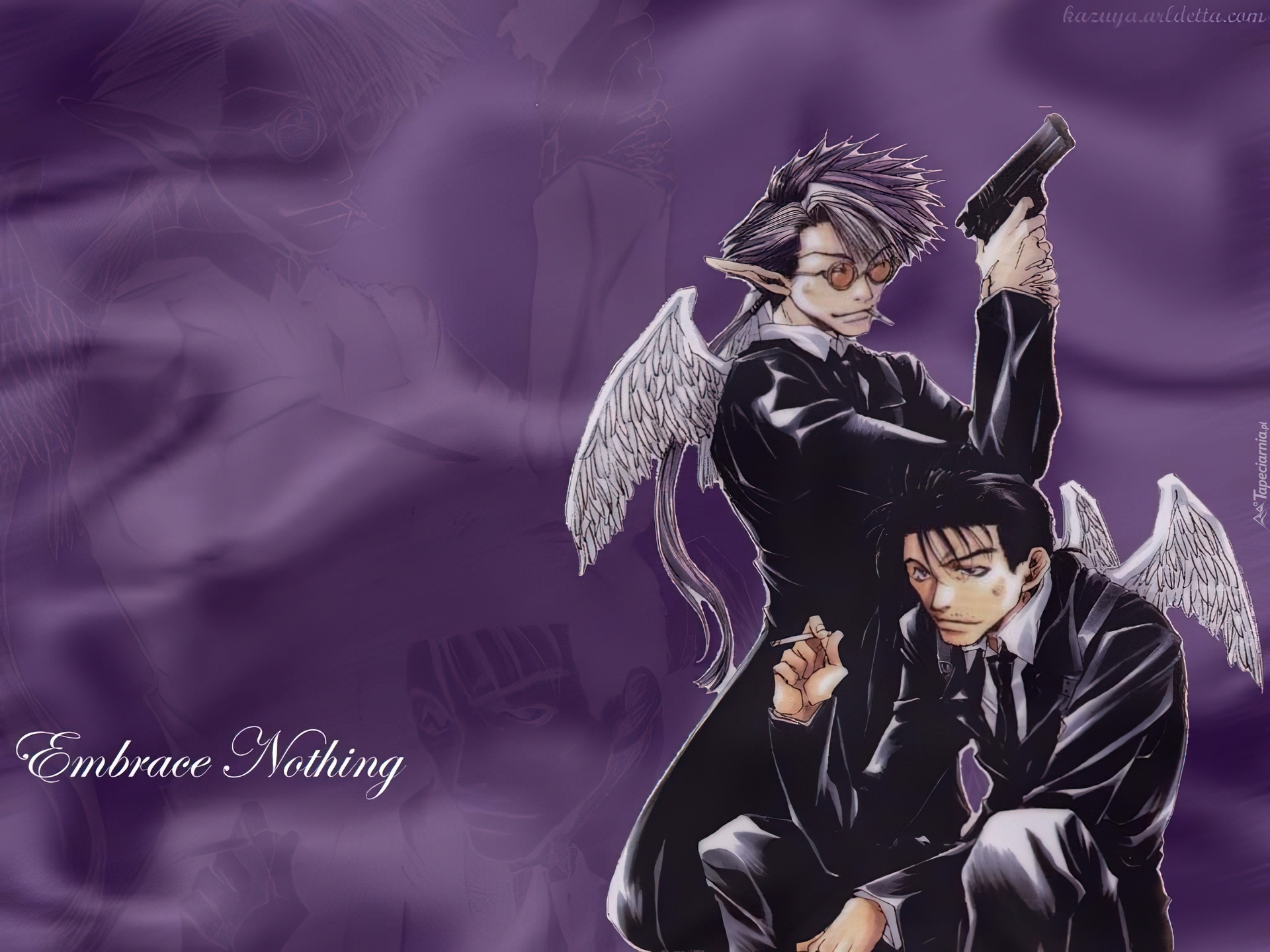 Edytor tapety: Saiyuki, pistolet, skrzydła