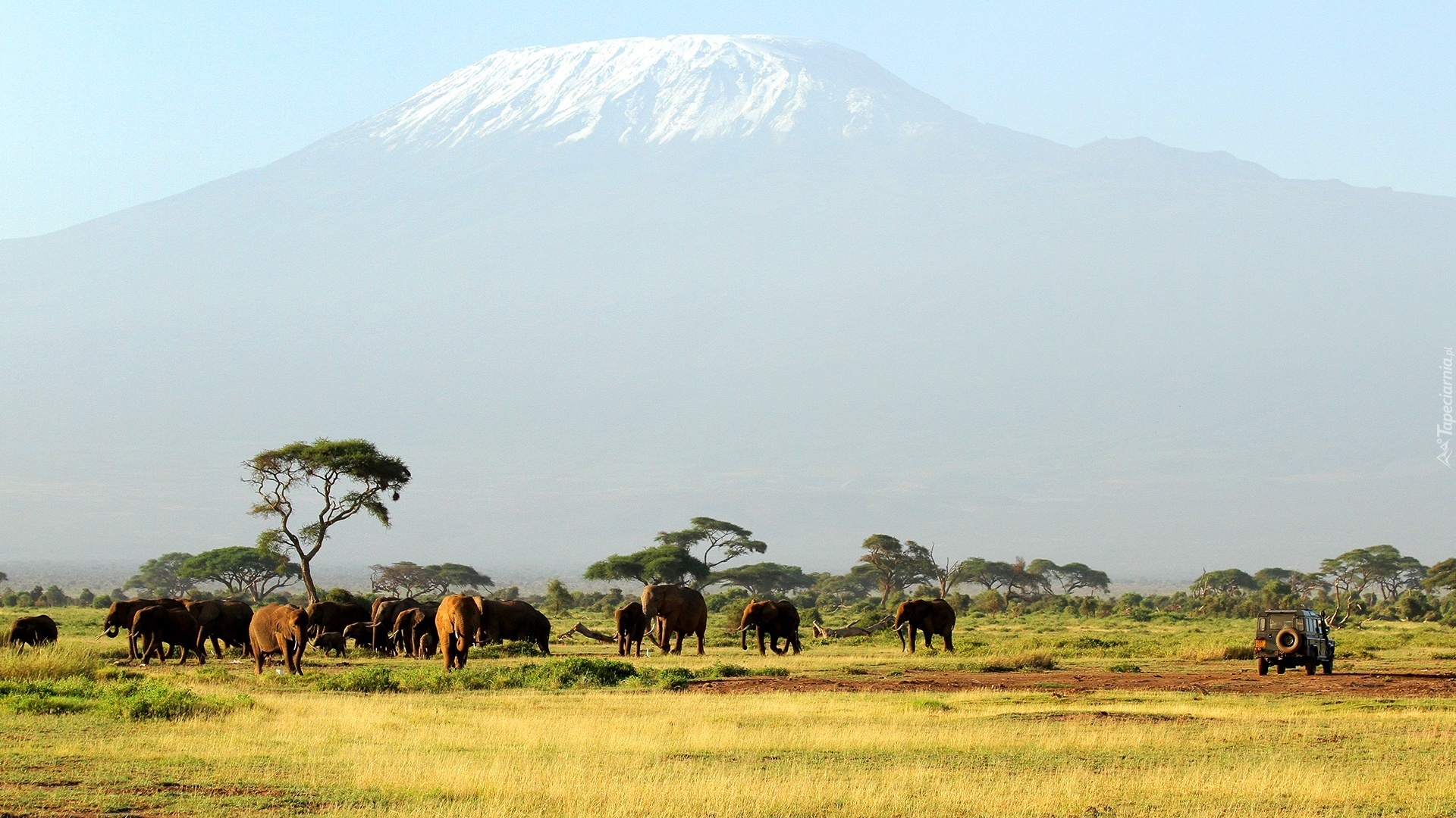 Edytor tapety: Słonie, Drzewa, Samochód, Terenowy
