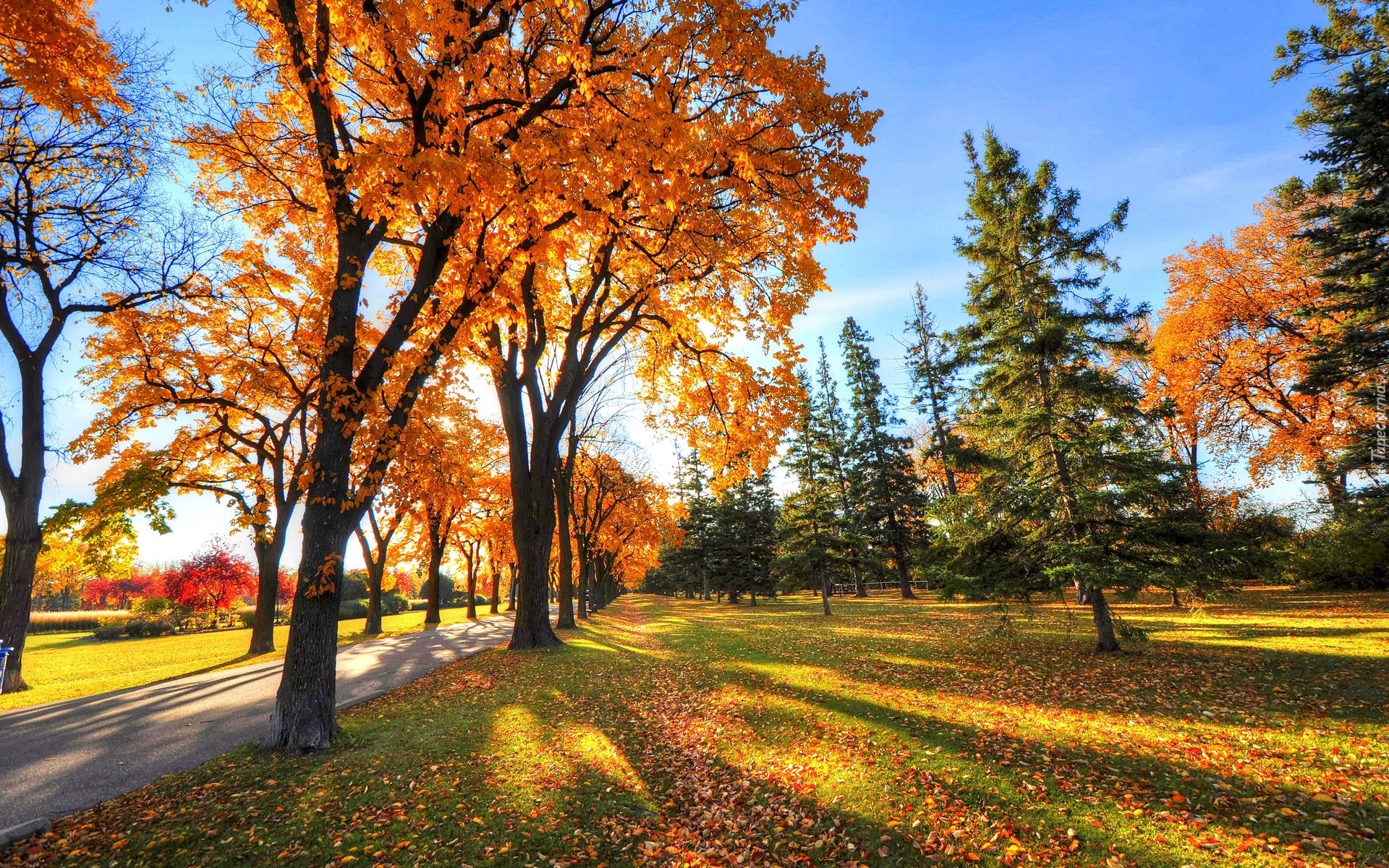 Edytor tapety: Droga, Drzewa, Liście, Przebijające, Światło, Jesień