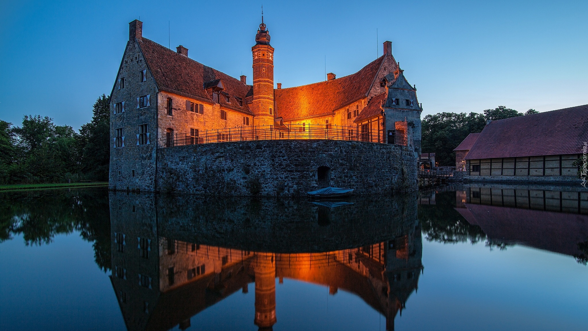 Edytor tapety: Budowla, Drzewa, Oświetlenie, Jezioro