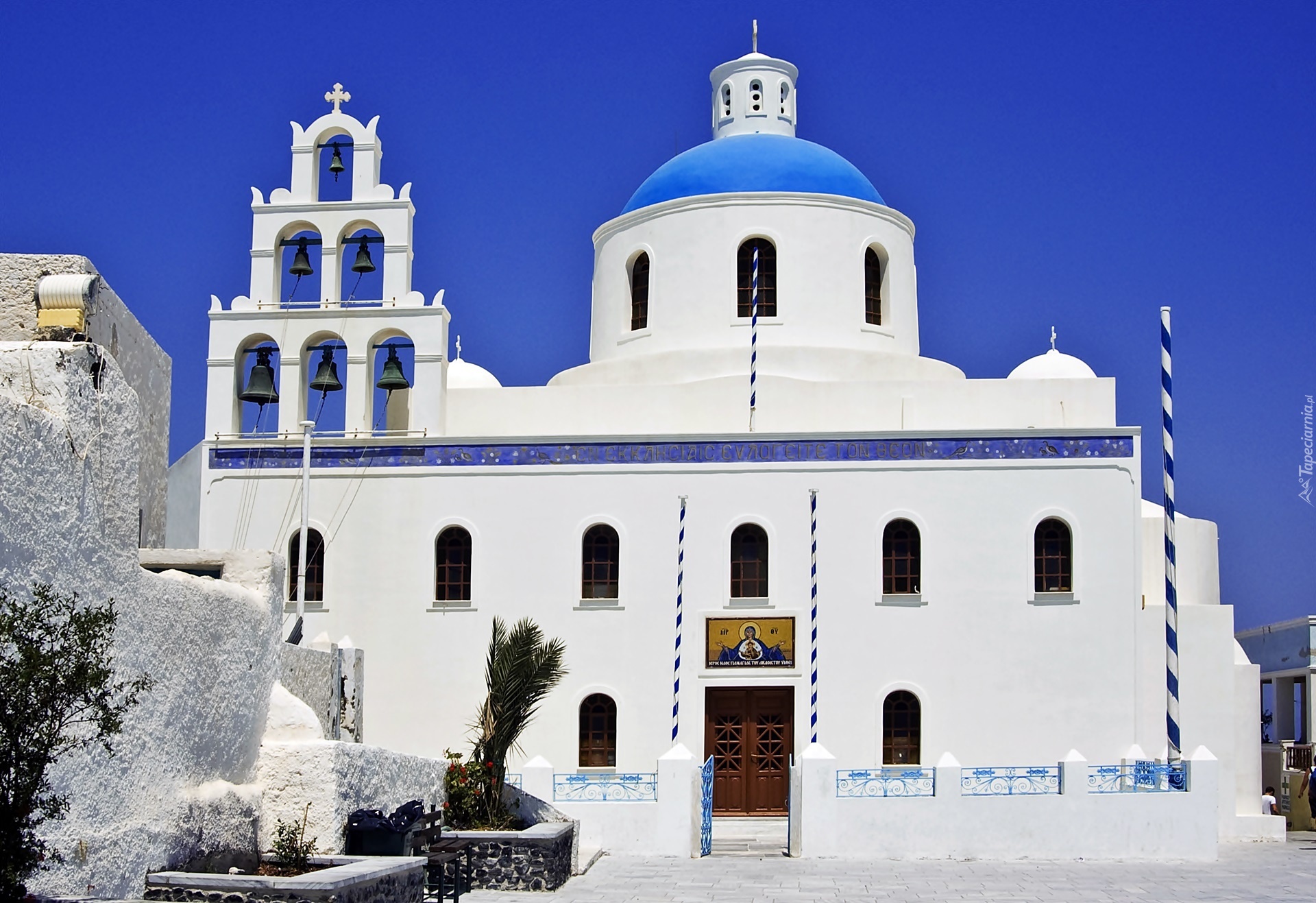 Edytor tapety: Grecja, Santorini, Wioska Oia, Cerkiew, Dzwony