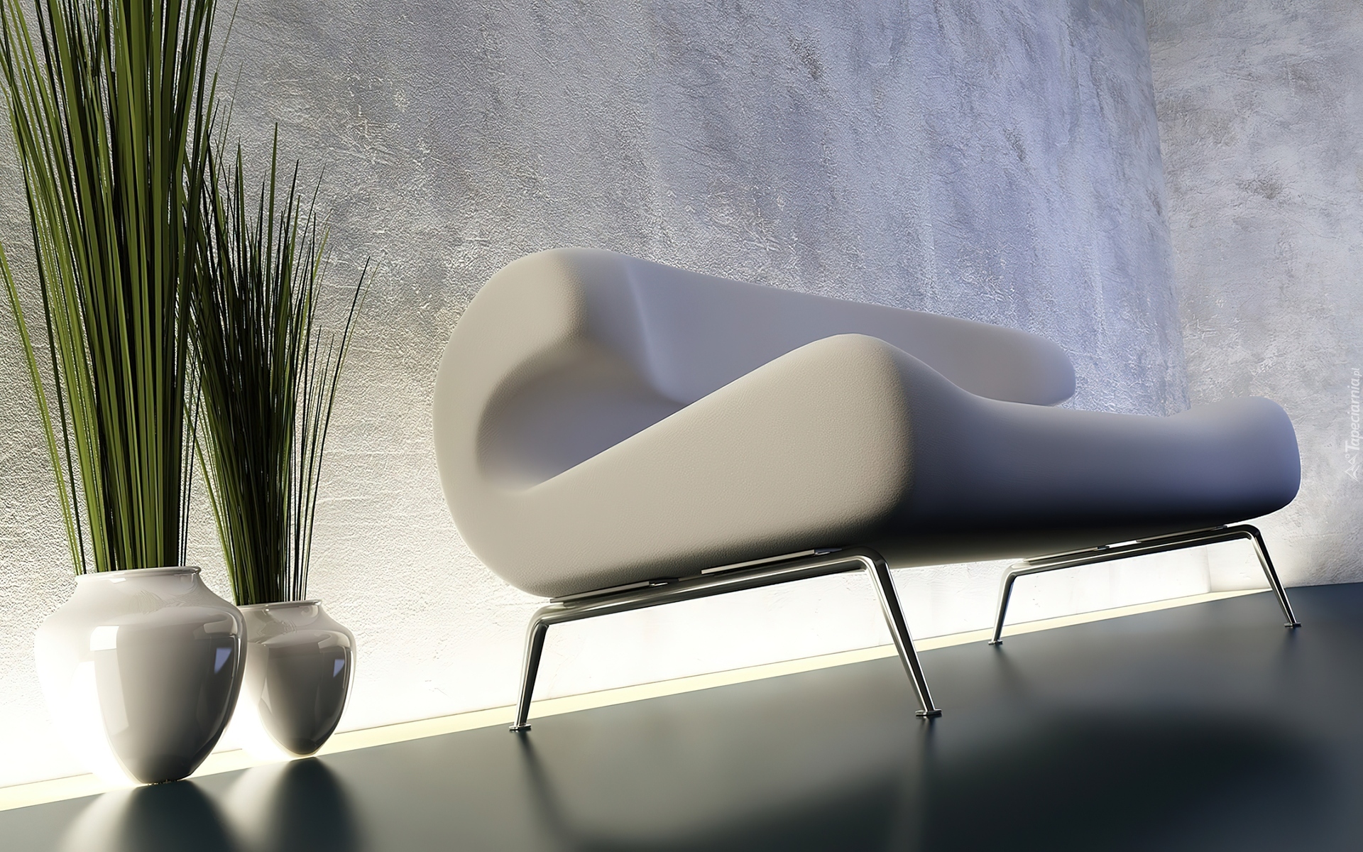 Edytor tapety: Biała, Sofa, Wazony, Trawa