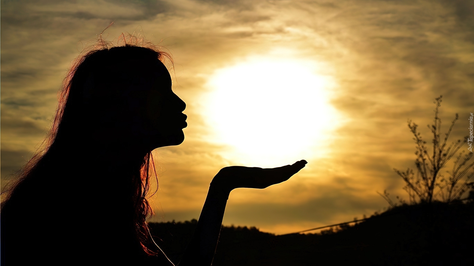 Edytor tapety: Dziewczyna, Profil, Zachód Słońca