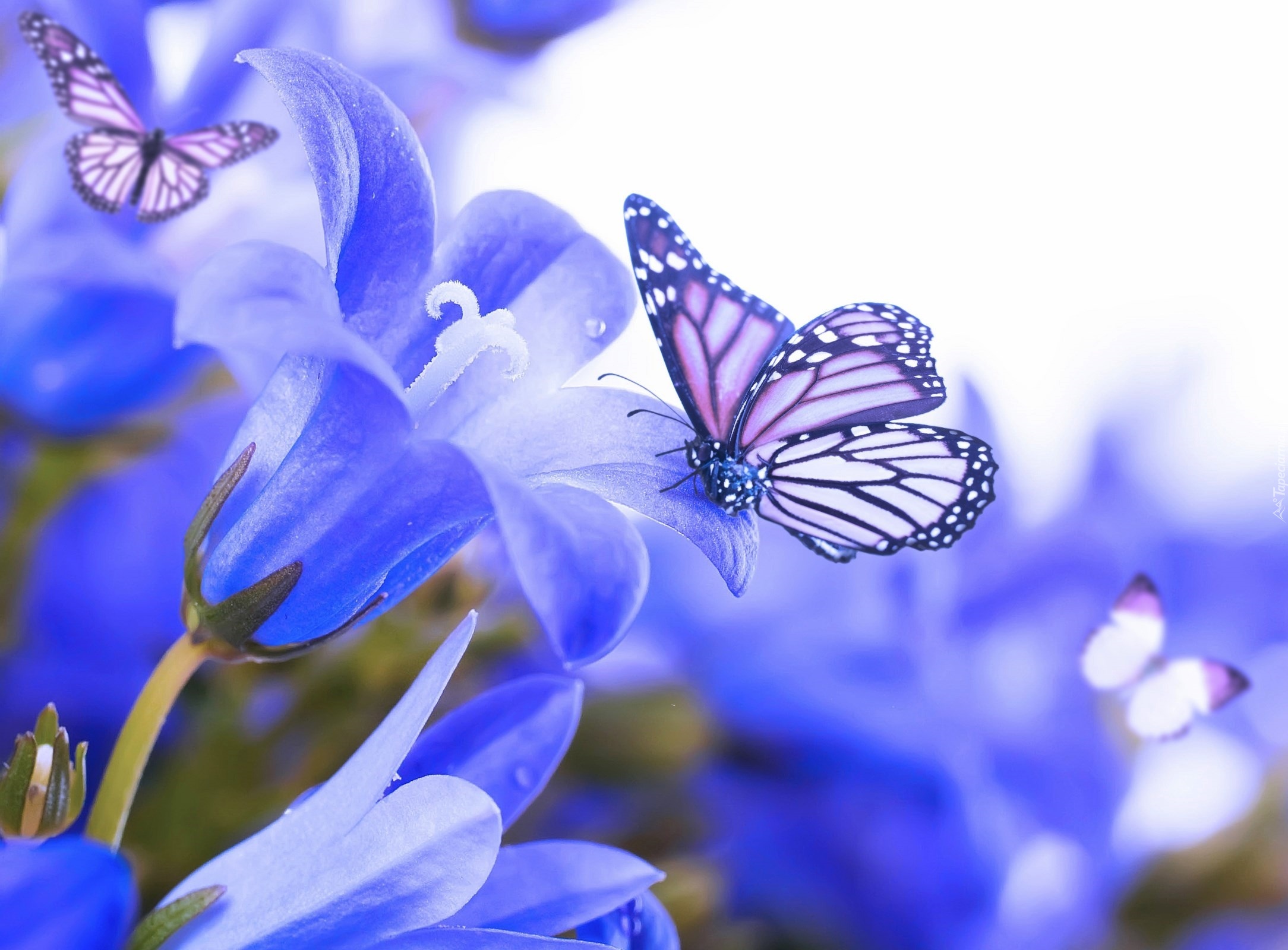 Edytor tapety: Niebieskie, Kwiaty, Motyle
