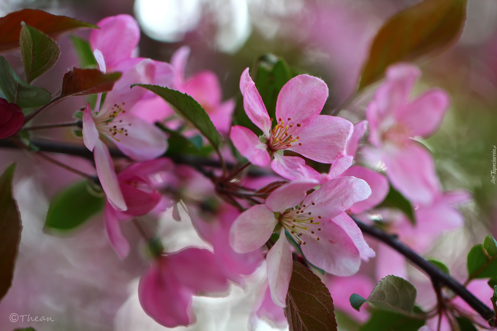 Edytor tapety: Różowe, Kwiaty, Drzewo, Owocowe, Jabłoń, Ozdobna, Rajskie, Jabłuszka