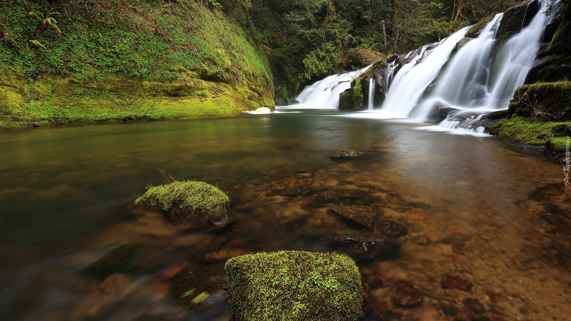 Edytor tapety: Wodospad, Rośliny, Omszałe, Kamienie