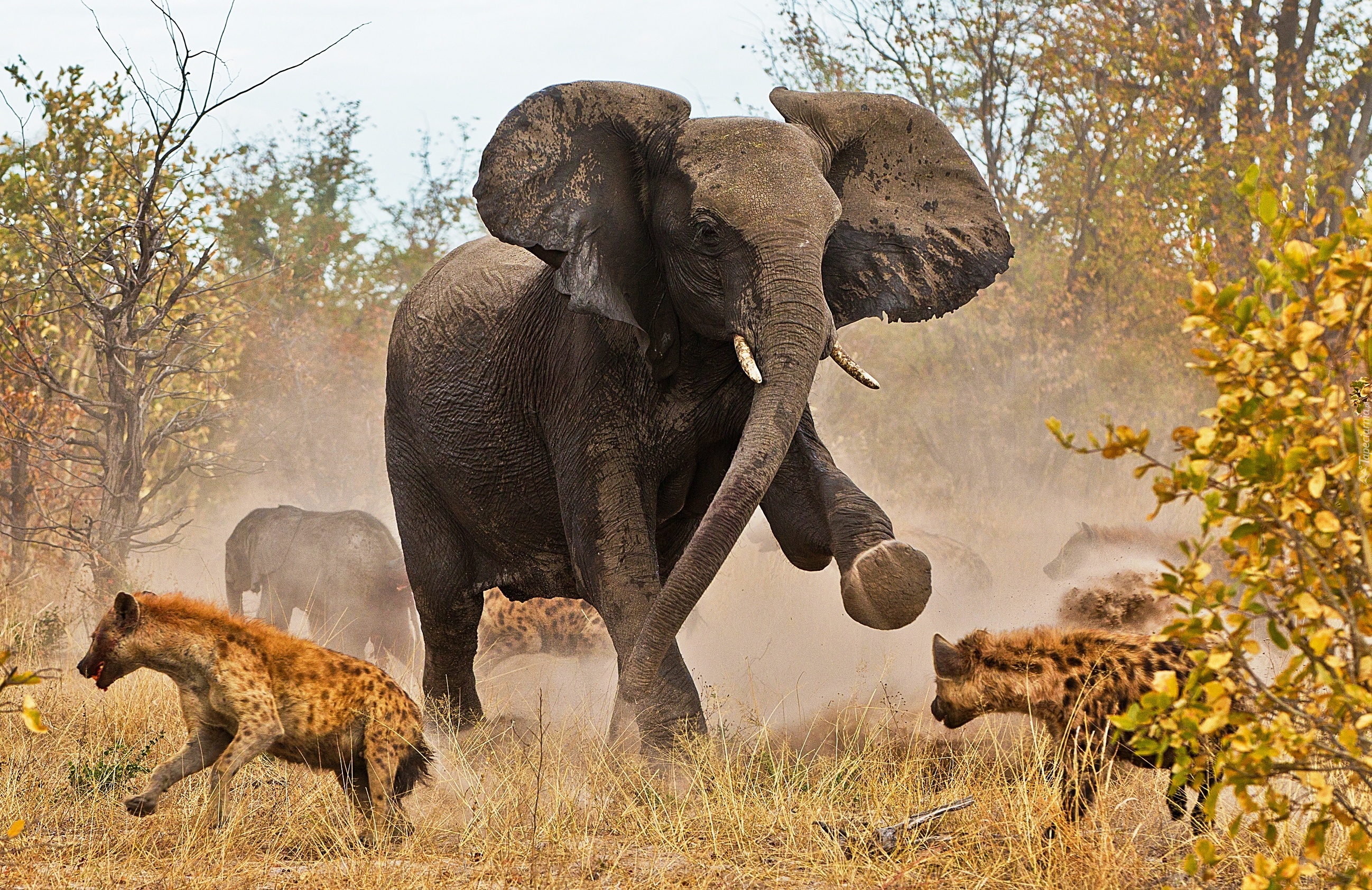 Edytor tapety: Słoń, Hieny