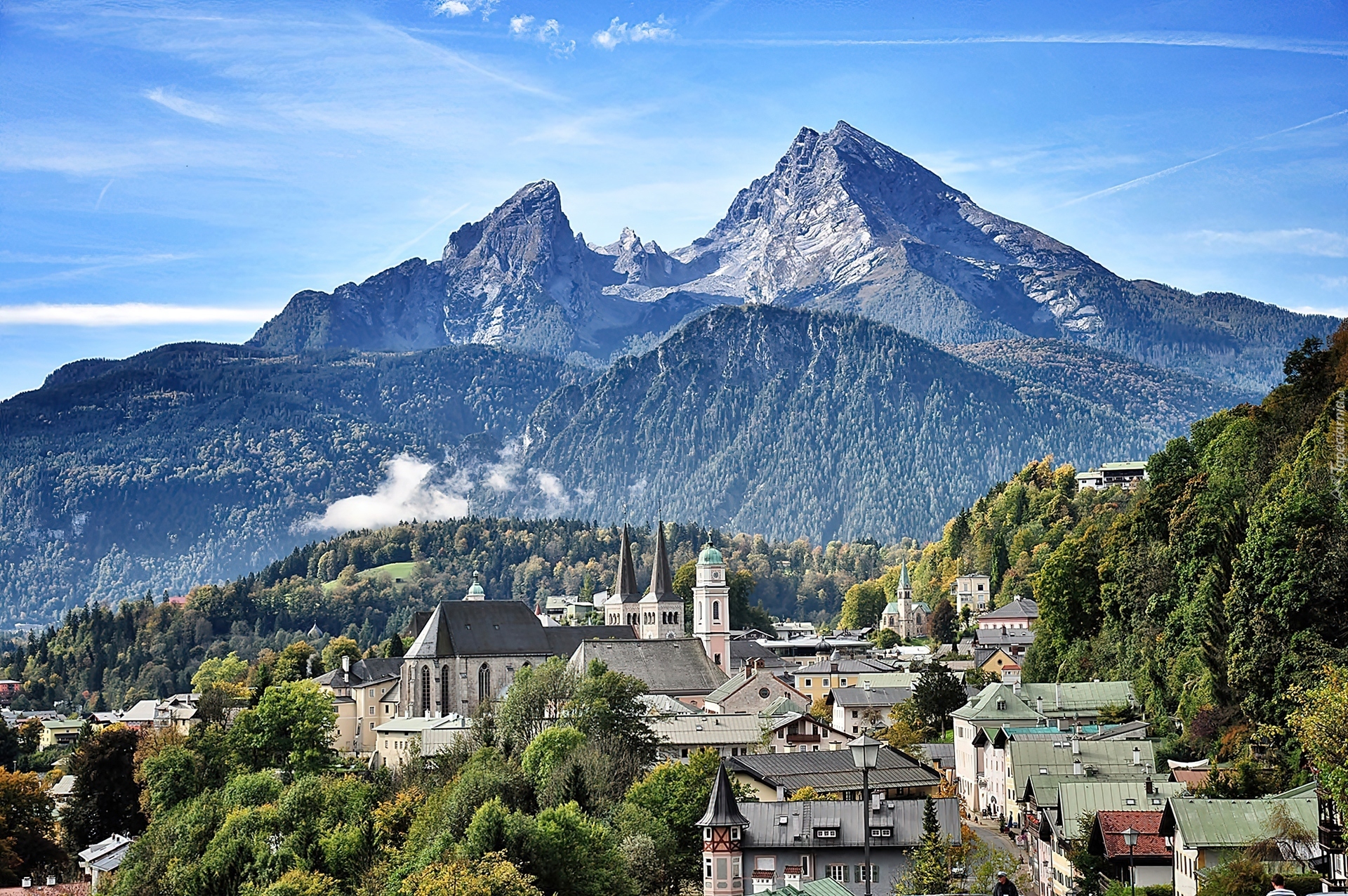 Edytor tapety: Berchtesgaden, Panorama, Miasteczka, Góry, Lasy, Mgła