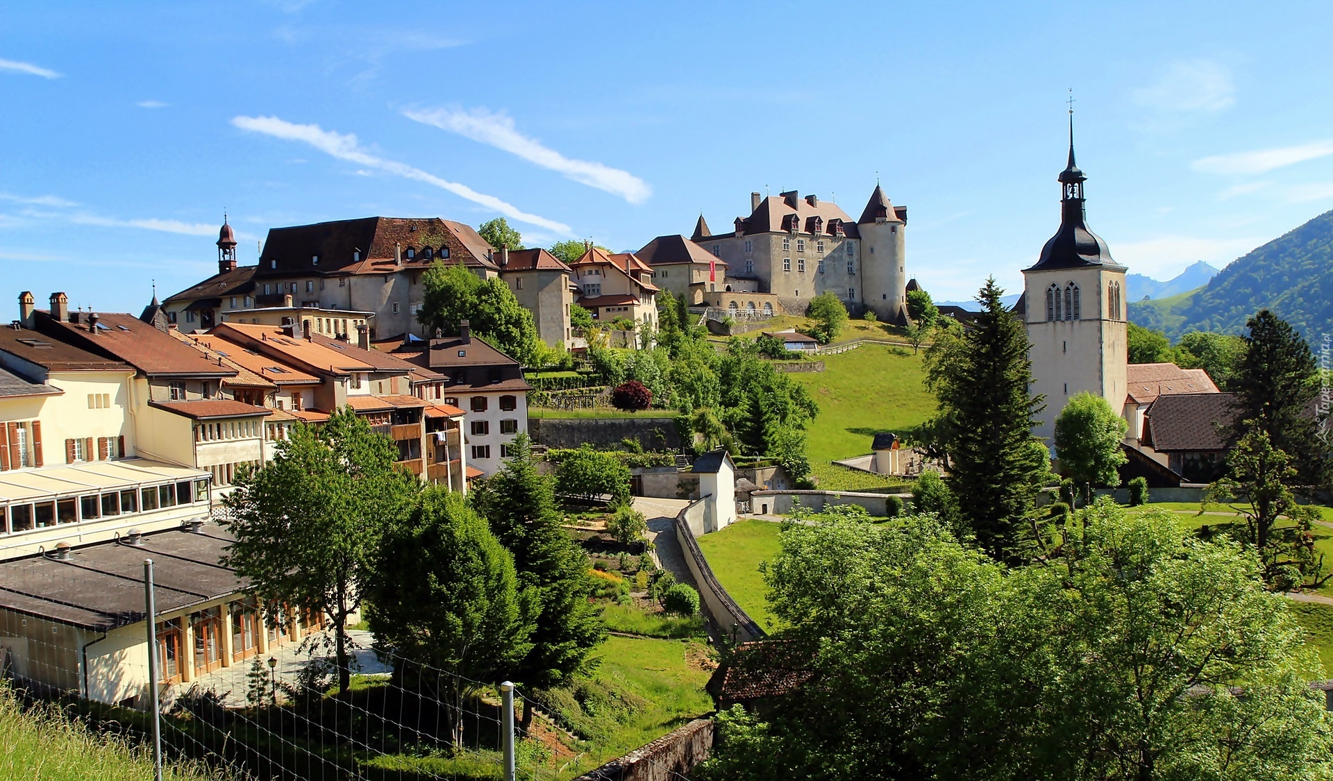 Edytor tapety: Zamek Gruyères, Miasto Gruyères, Kanton Fryburg, Szwajcaria