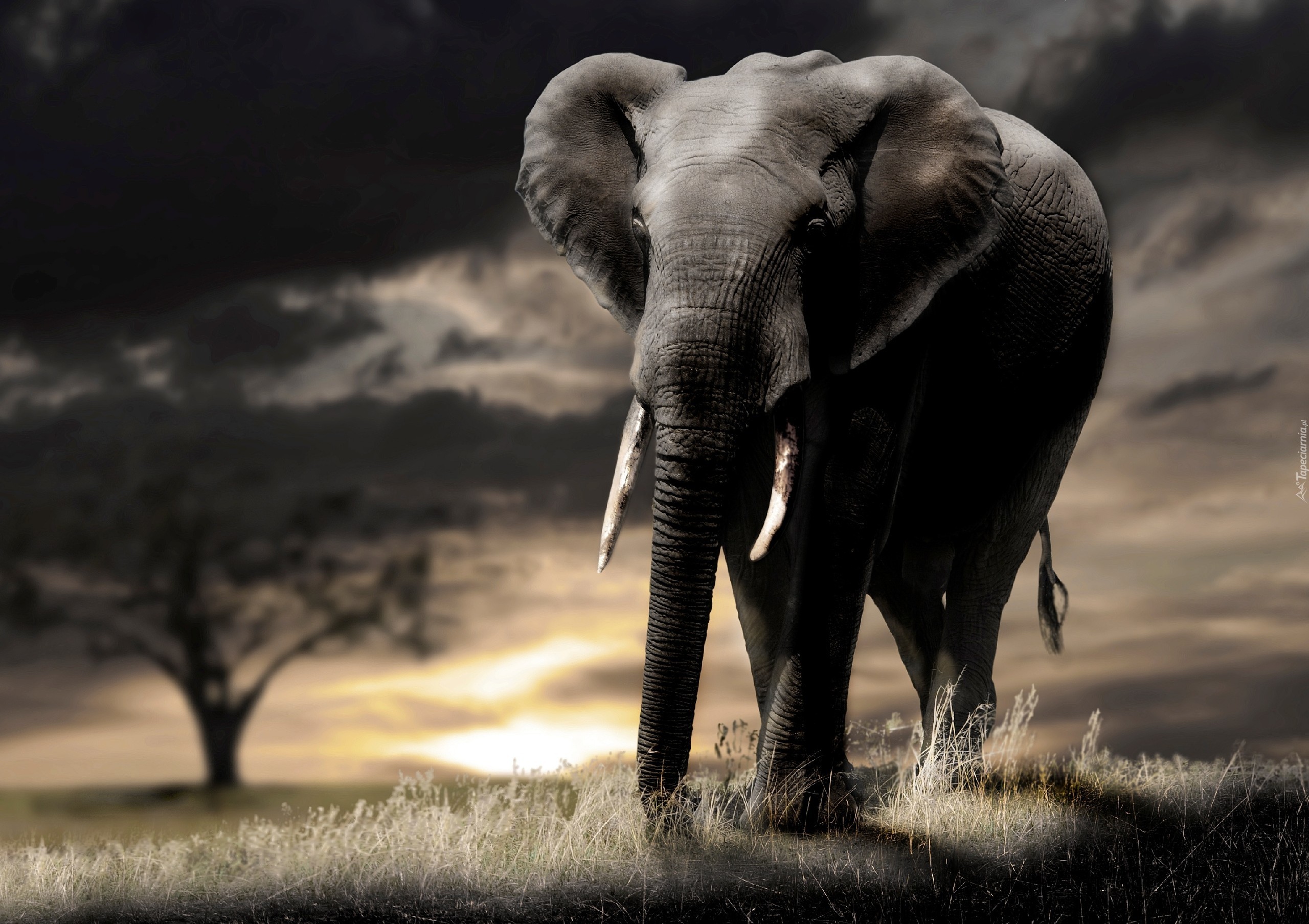Edytor tapety: Słoń, Trawa, Chmury