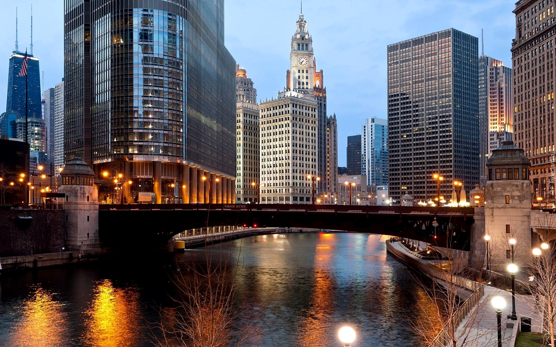 Edytor tapety: Wieżowce, Most, Rzeka, Chicago, USA