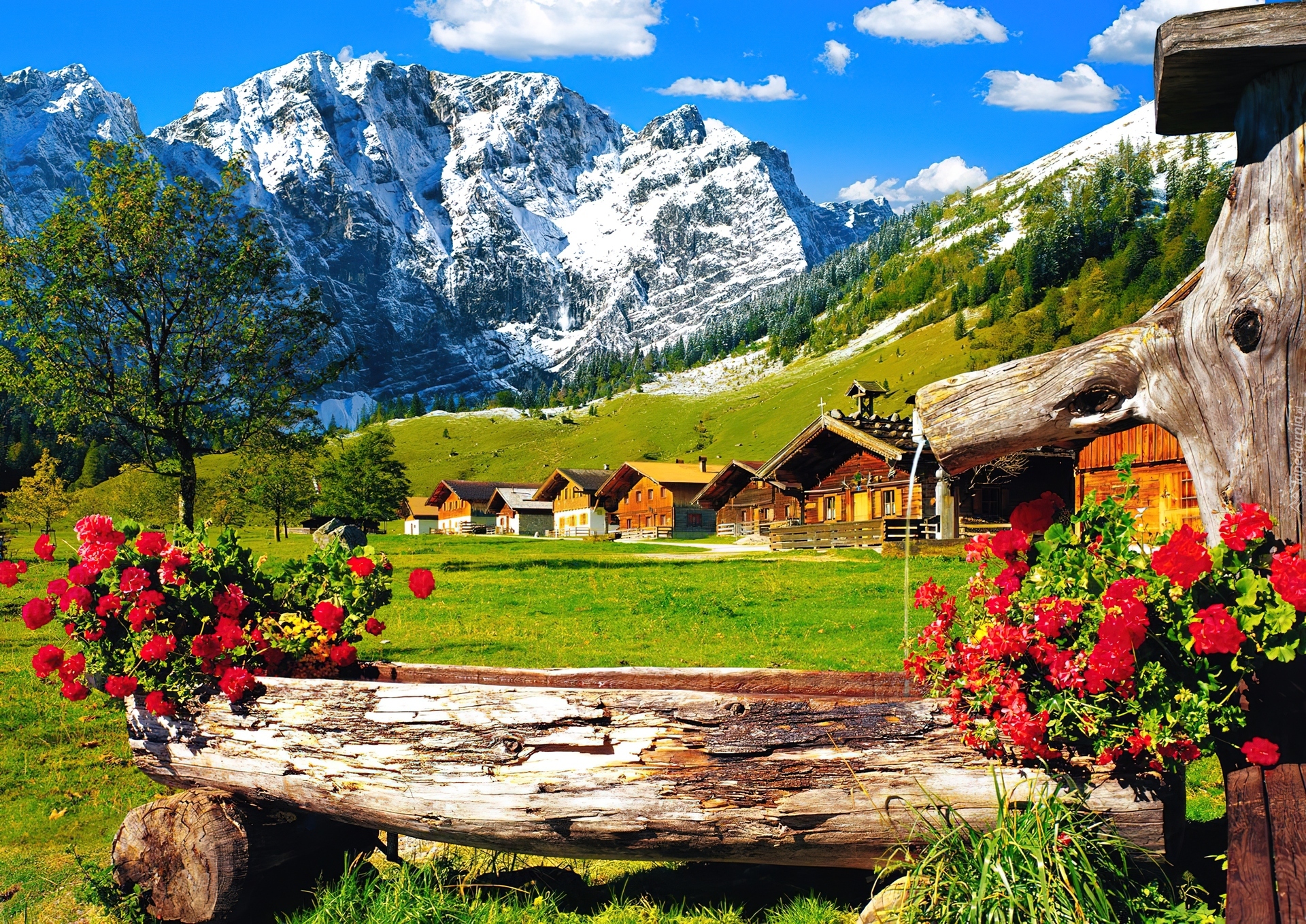 Edytor tapety: Góry, Domy, Kwiaty, Lato