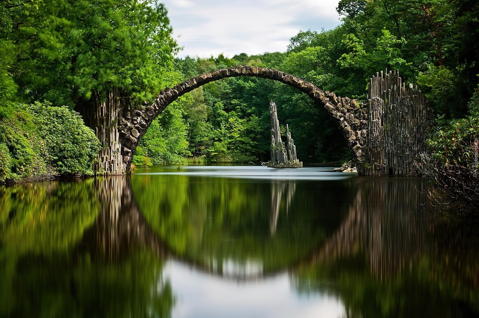 Edytor tapety: Niemcy, Saksonia, Gablenz, Jezioro Rakotz, Kamienny, Most
