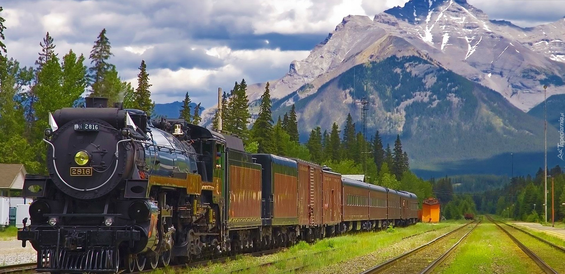 Edytor tapety: Pociąg, Góry, Lasy, Banff, Kanada