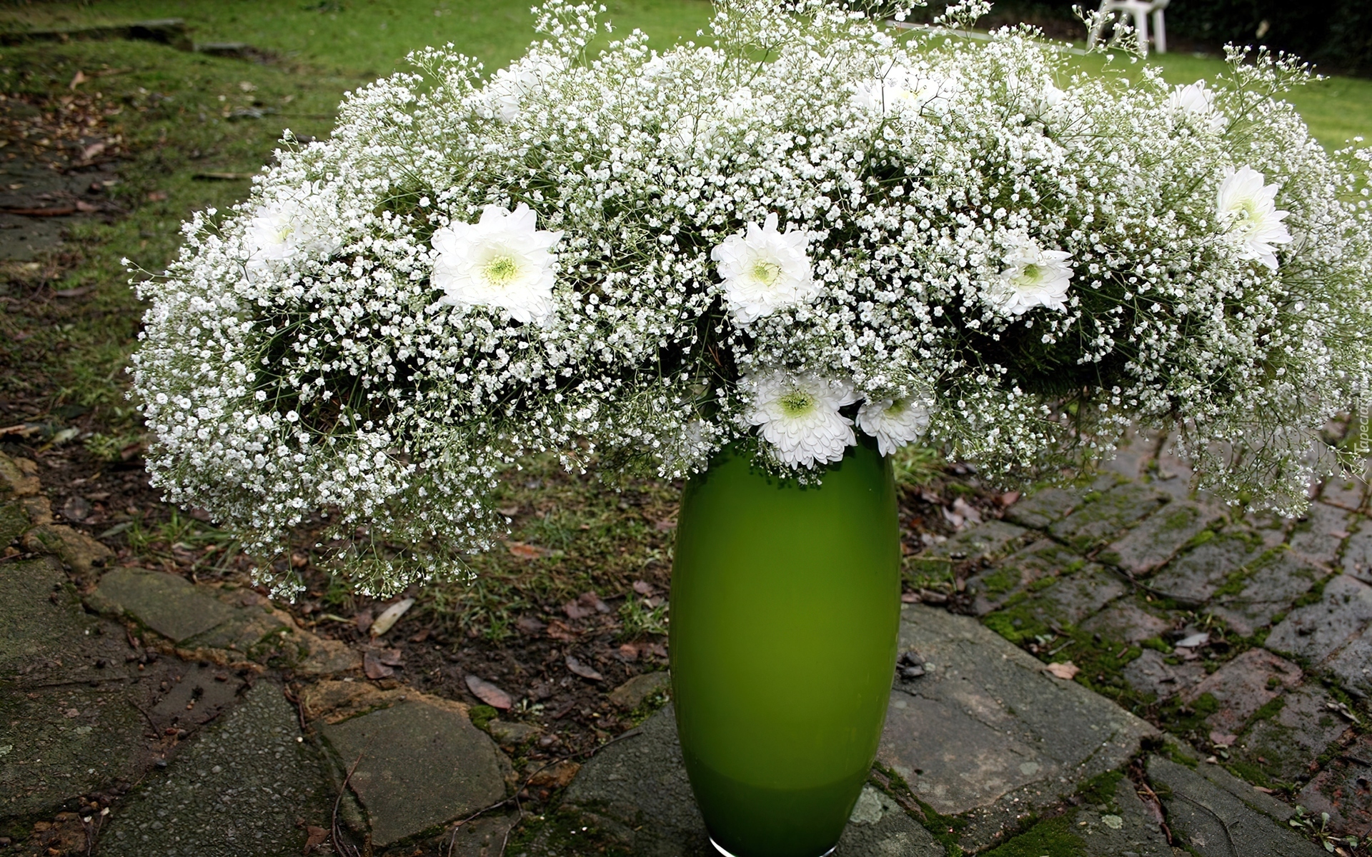 Edytor tapety: Chryzantemy, Gęsiówka, Zielony, Wazon