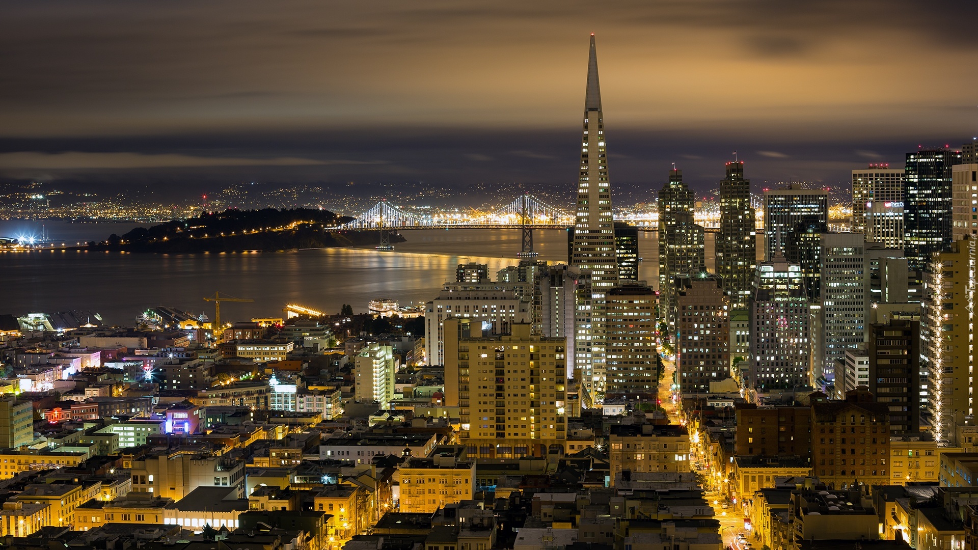 Edytor tapety: Drapacze, Chmur, Most, Rzeka, Noc