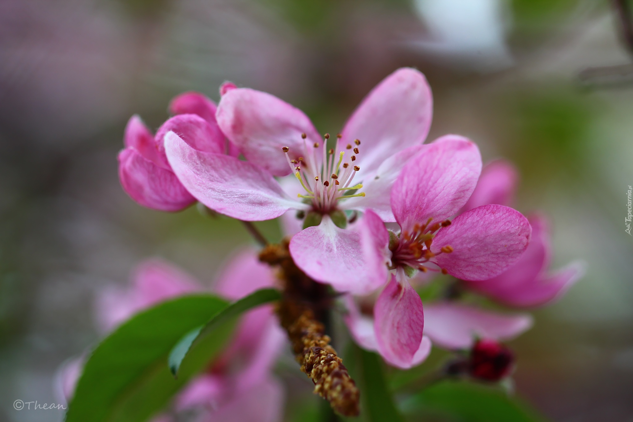 Edytor tapety: Różowe, Kwiaty, Drzewo, Owocowe, Jabłoń Ozdobna, Rajskie, Jabłuszka