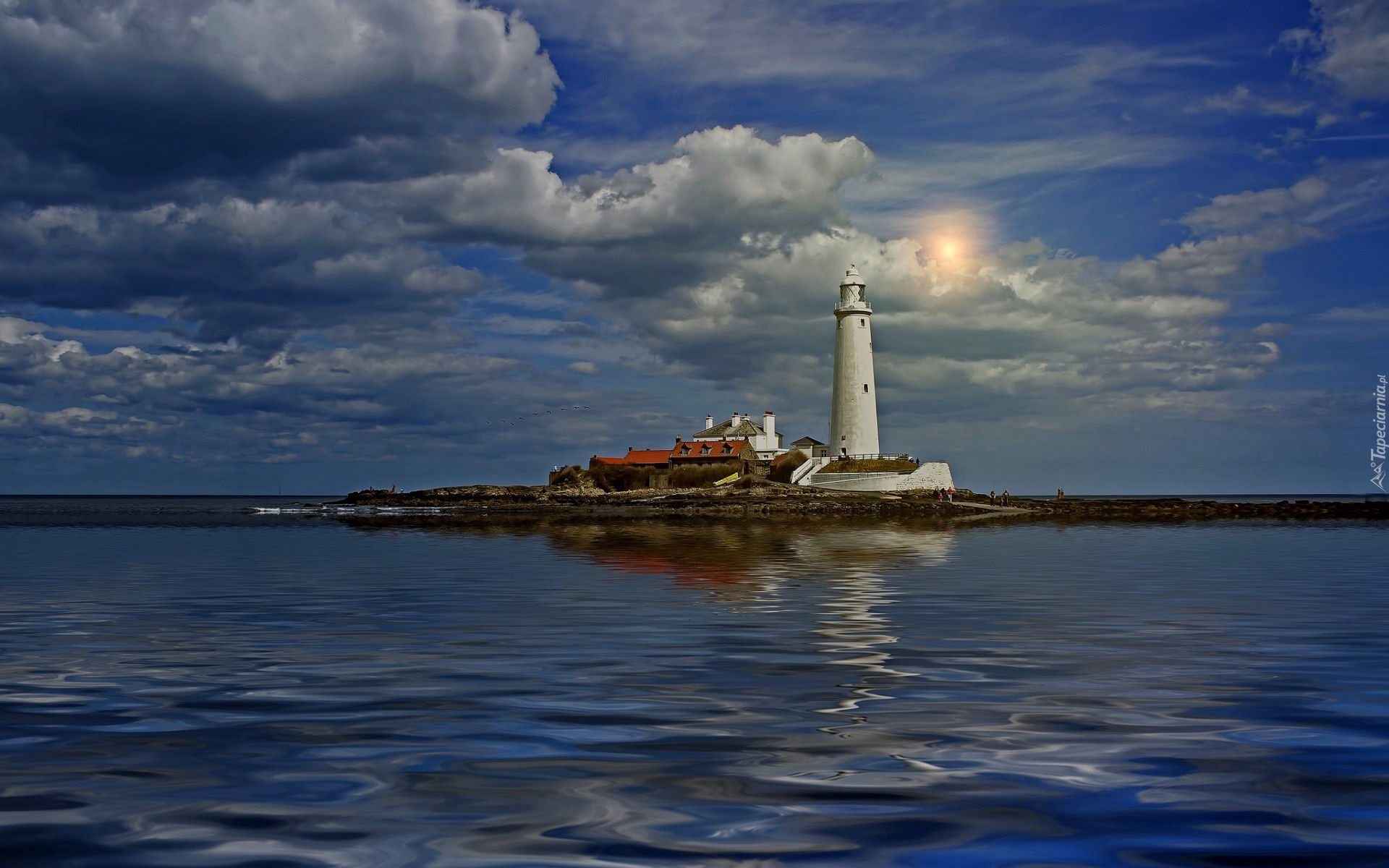 Edytor tapety: Latarnia, Morska, Morze, Chmury, Promienie, Słońca