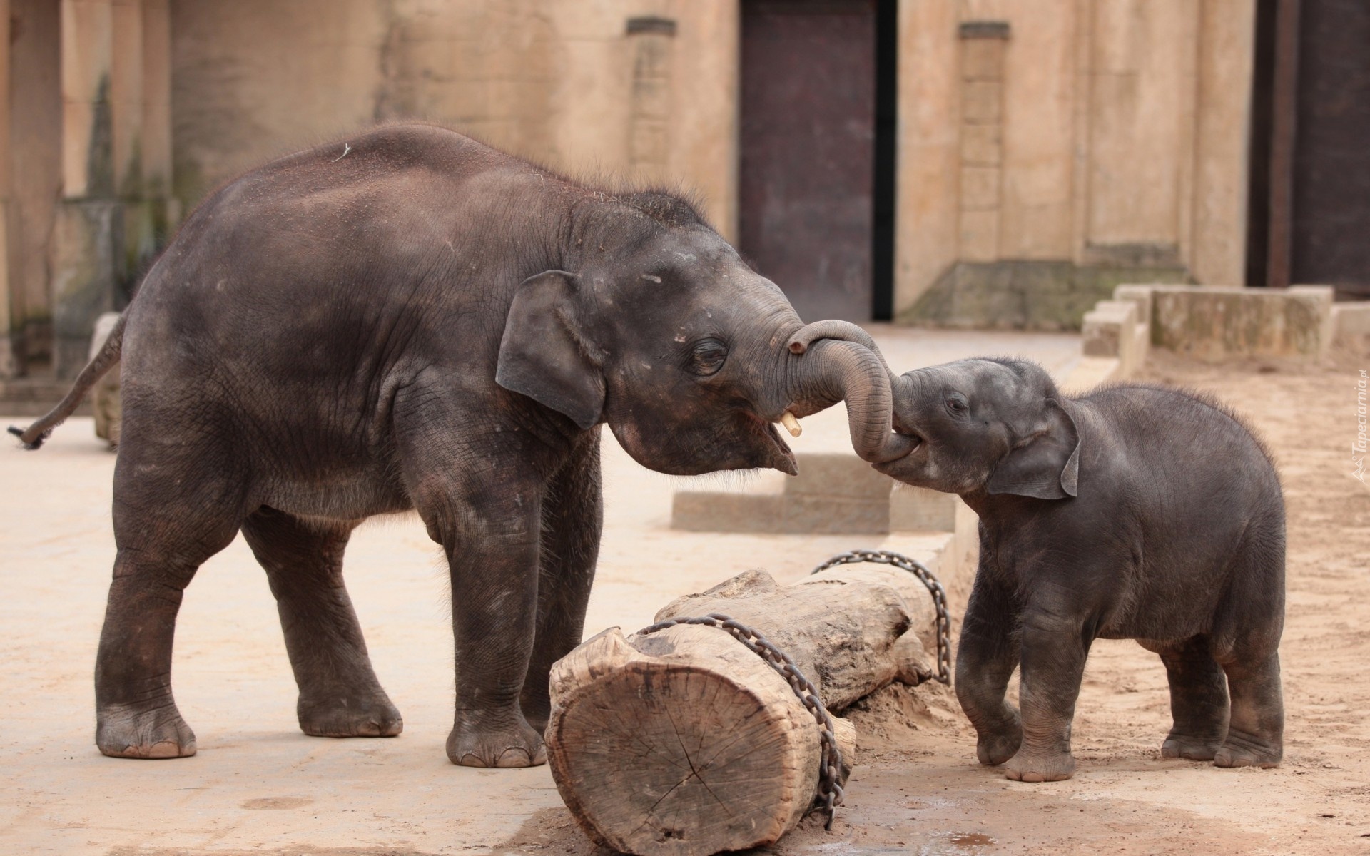 Edytor tapety: Słonica, Słoniątko, Ogród, Zoologiczny