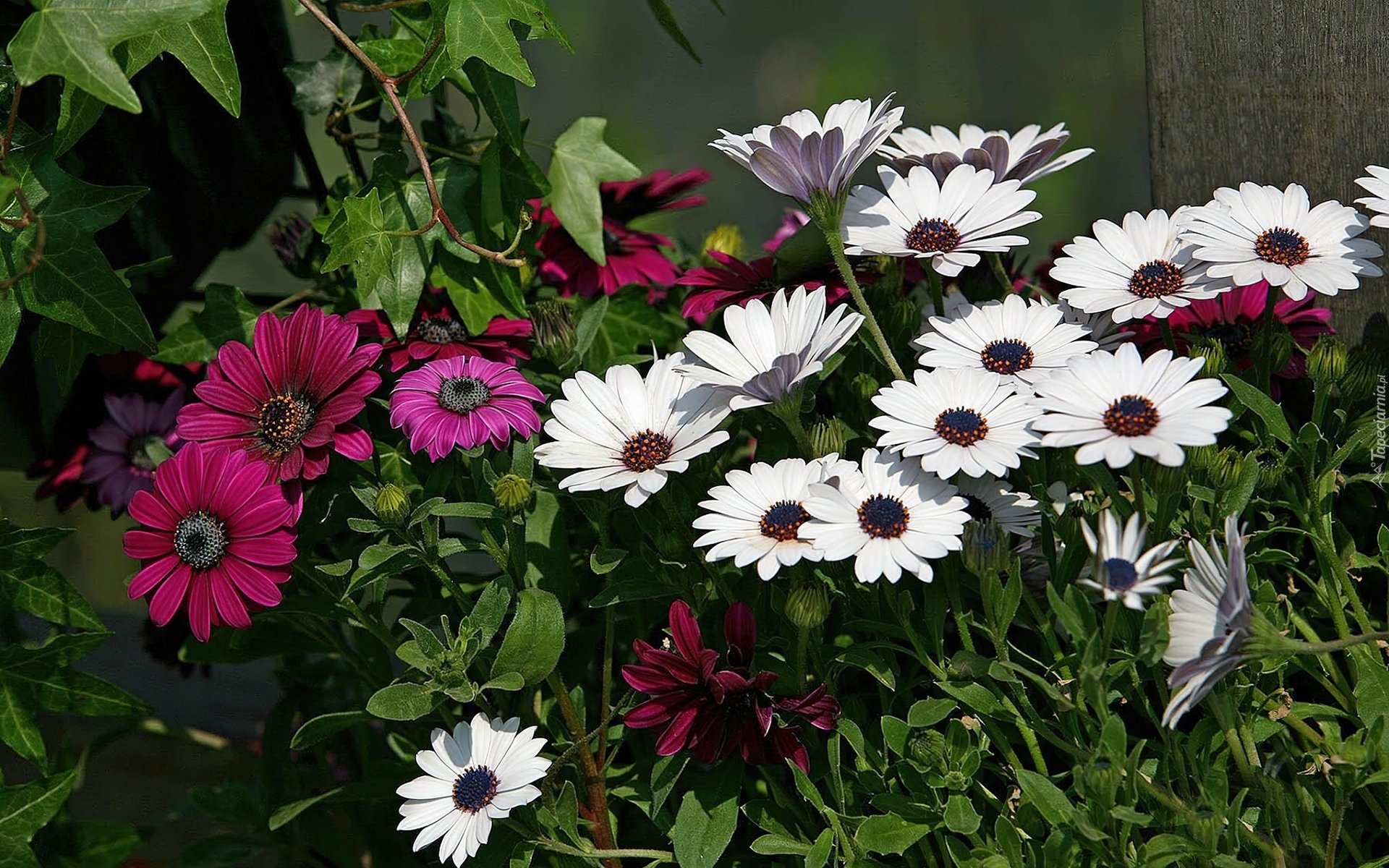 Edytor tapety: Kwiaty, Bordowe, Białe, Stkrotki afrykańskie