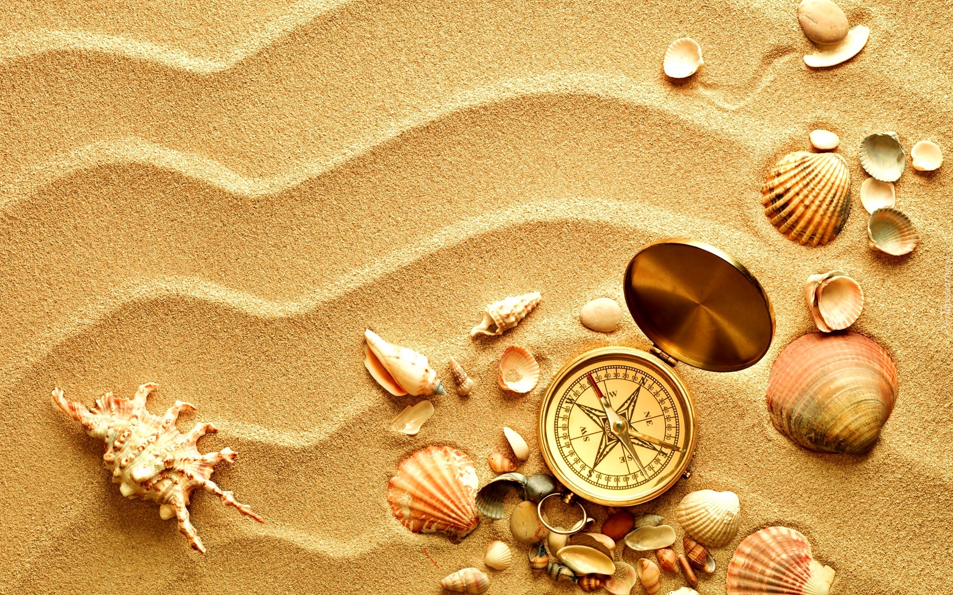 Edytor tapety: Piasek, Muszle, Muszelki, Kompas
