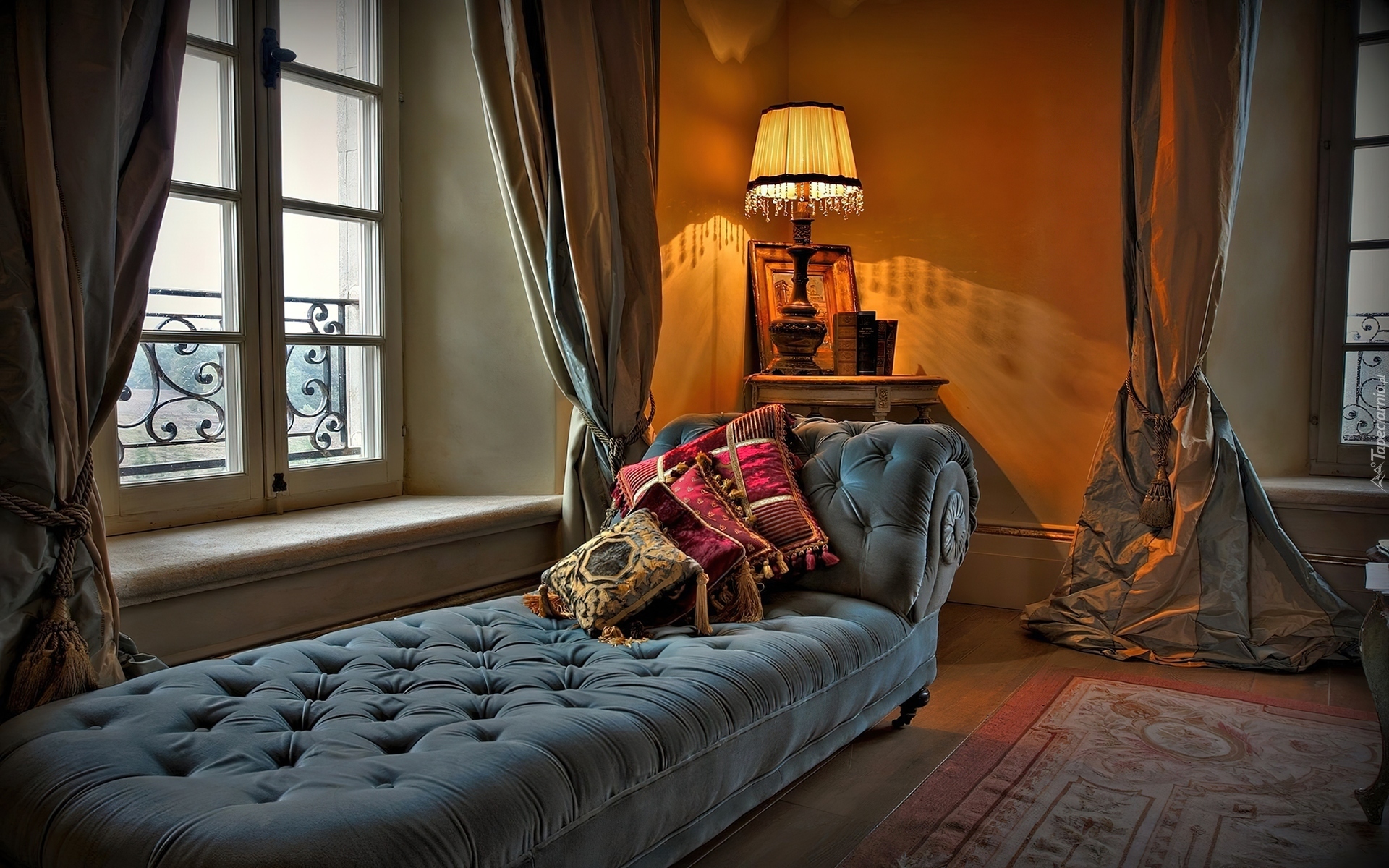 Edytor tapety: Pokój, Kanapa, Poduszki, Okno, Lampa
