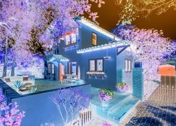 Edytor tapety: Dom, Taras, Drzewa, Kwiaty