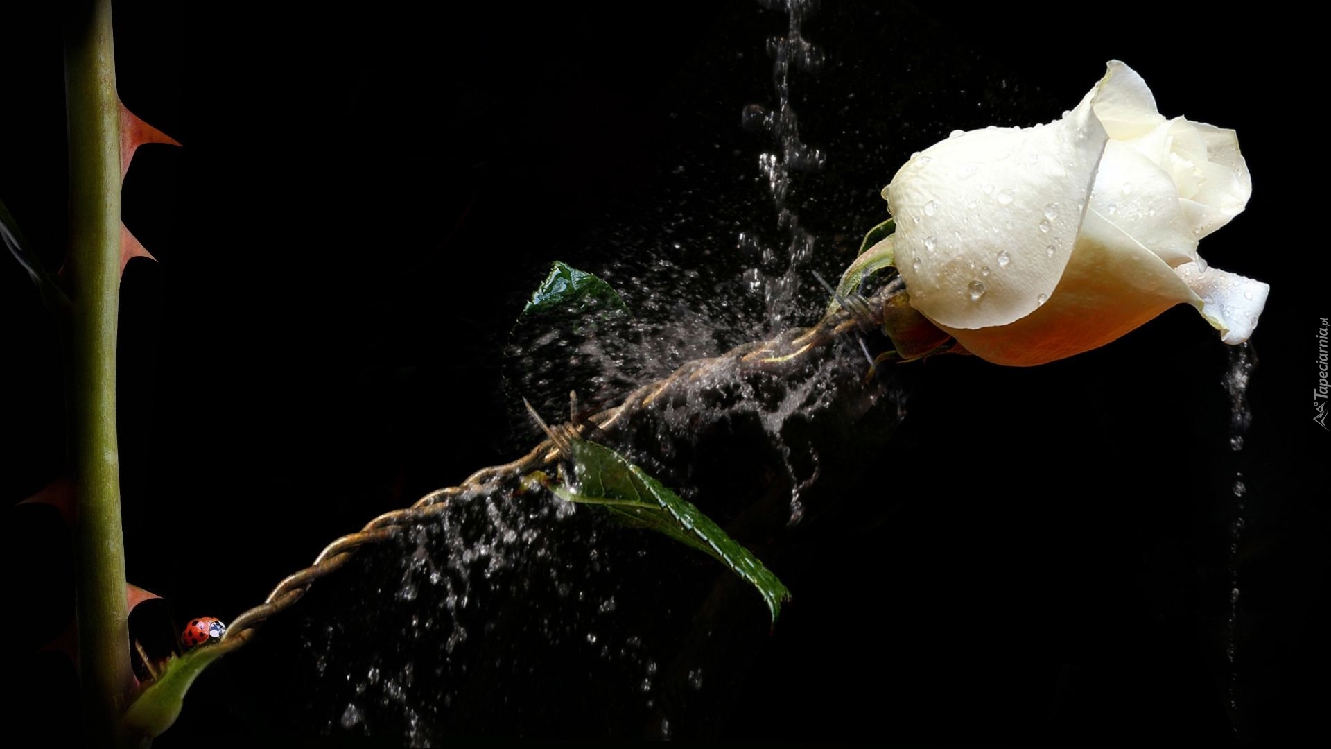 Edytor tapety: Biała, Róża, Krople, Woda, Biedronka