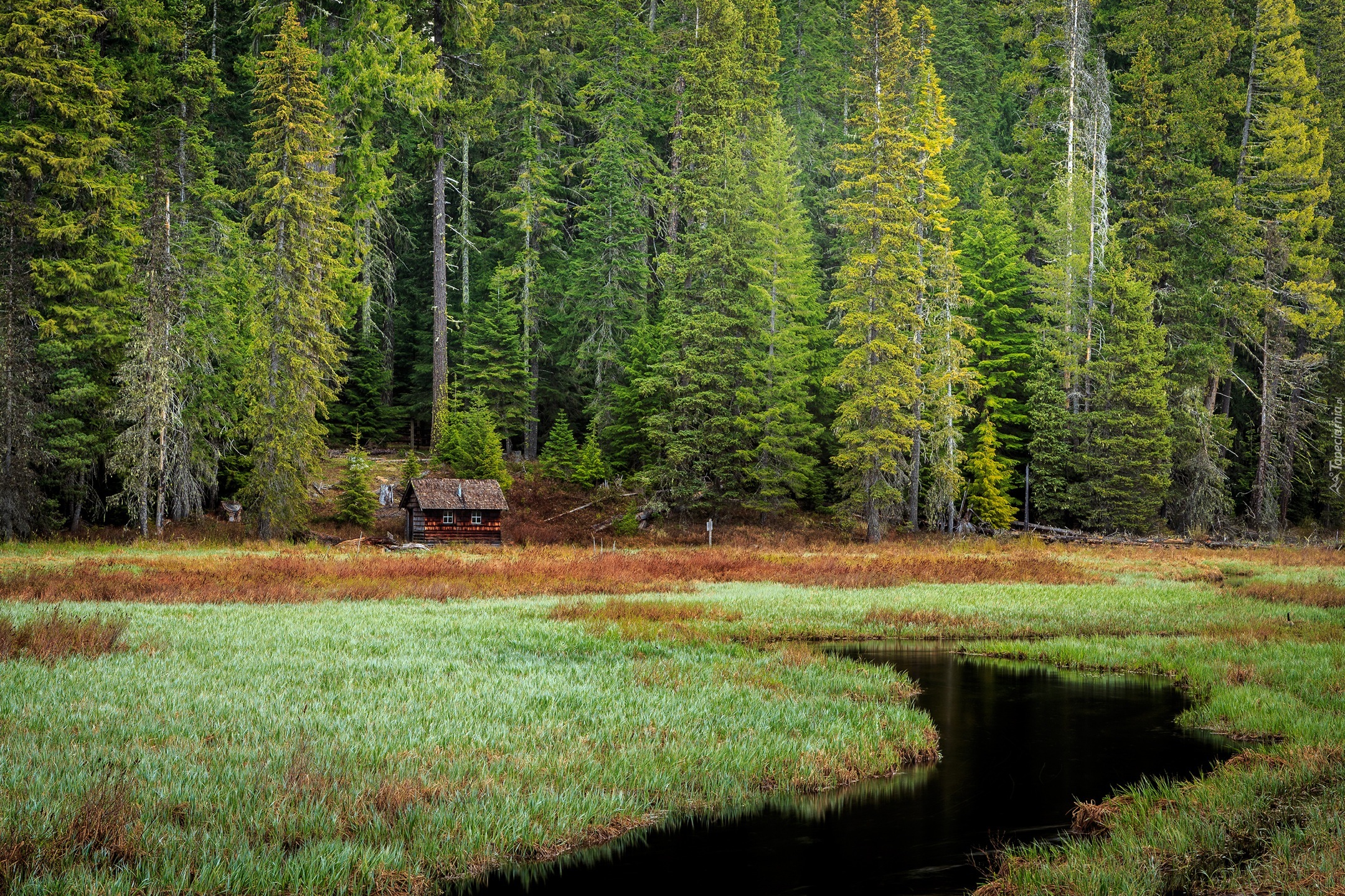 Edytor tapety: Las, Domek, Chatka, Staw