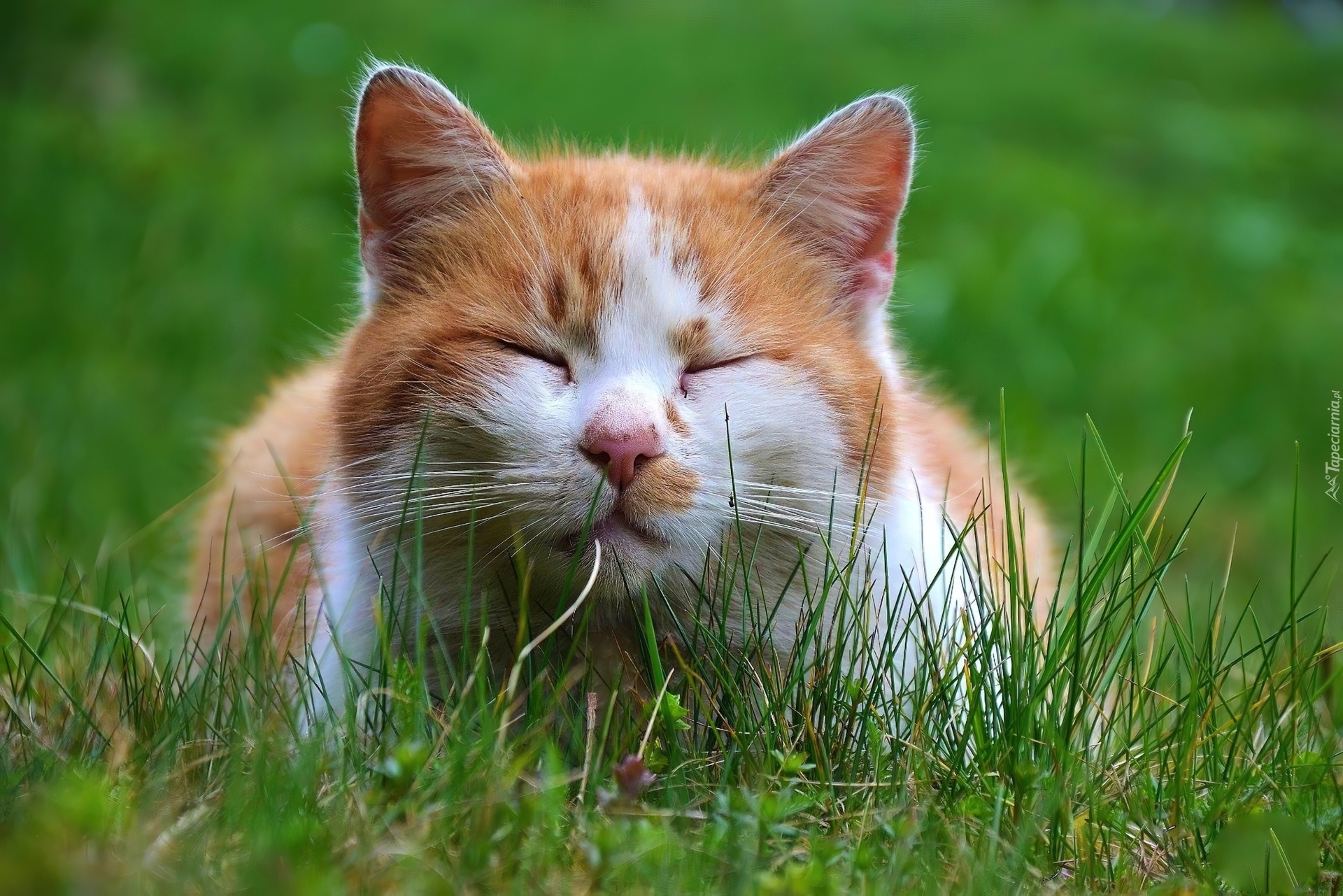 Edytor tapety: Kot, Trawa, Drzemka