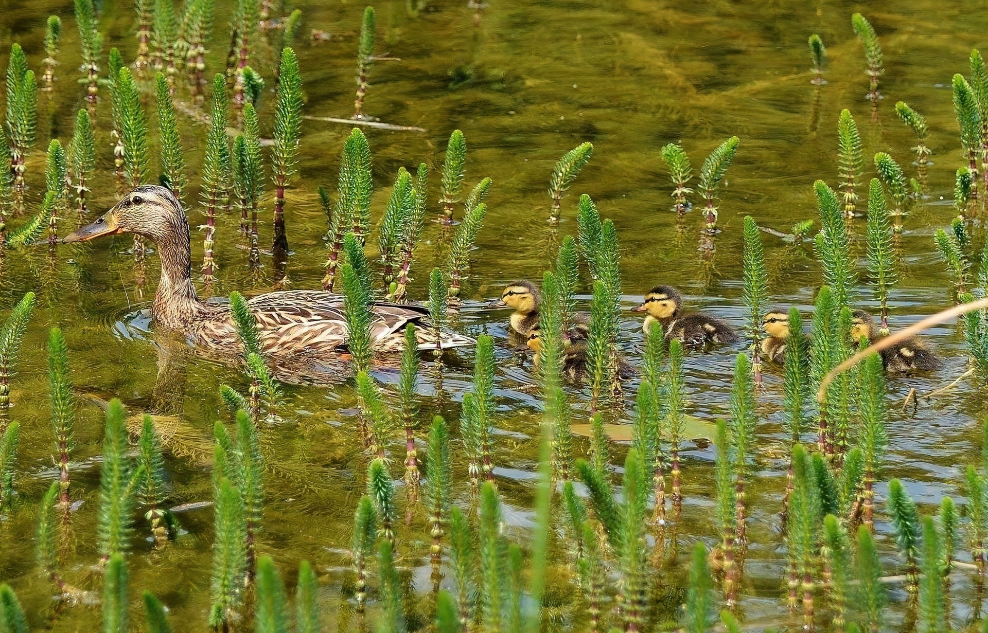 Edytor tapety: Kaczki, Stadko, Woda, Roślinki