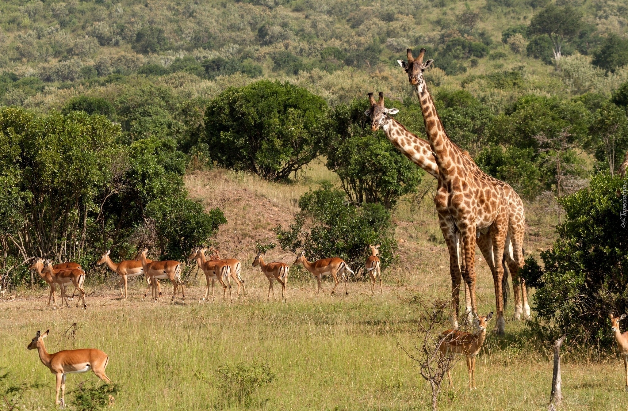 Edytor tapety: Żyrafy, Antylopy, Sawanna