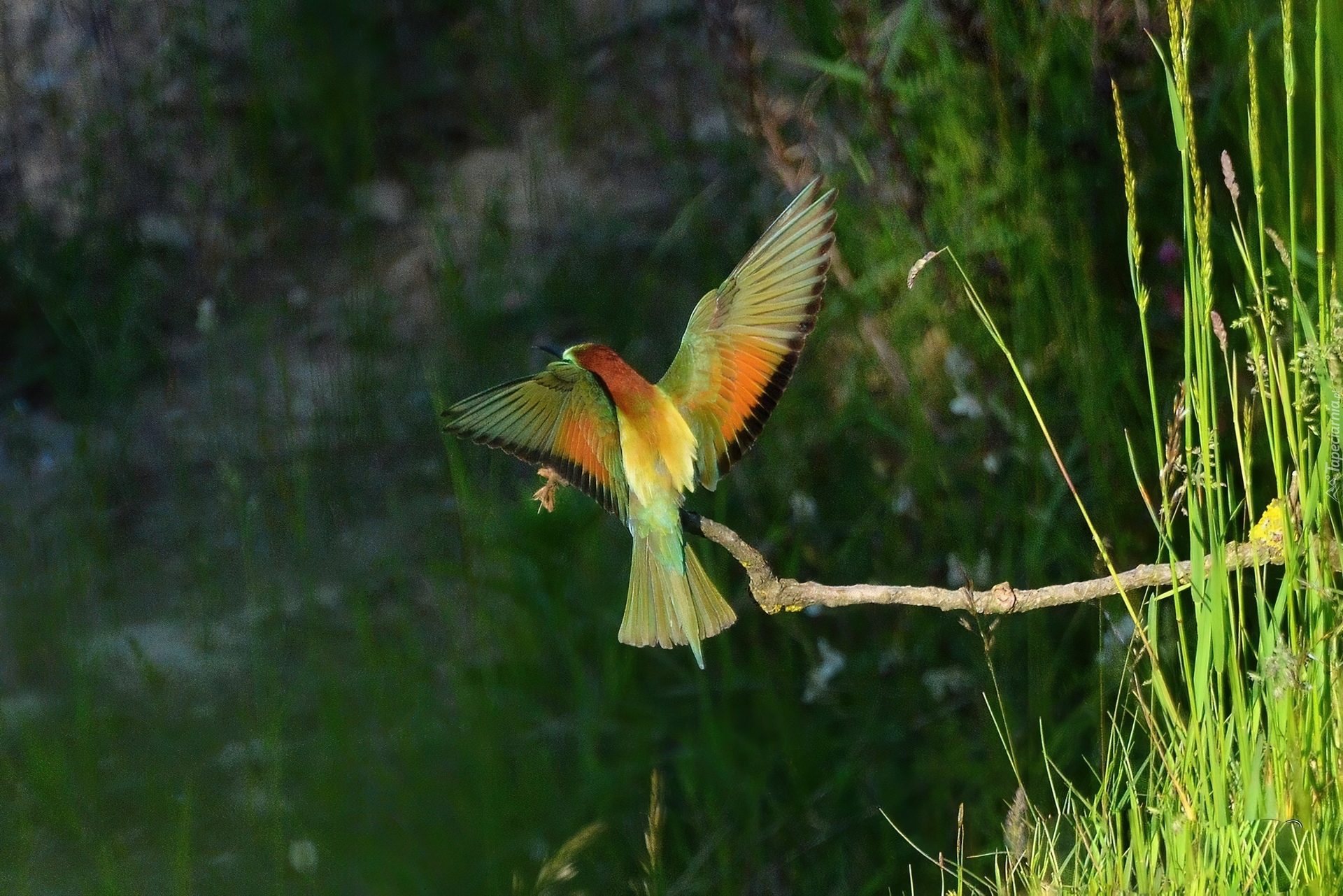 Edytor tapety: Żołna, Skrzydła, Gałąź, Trawa
