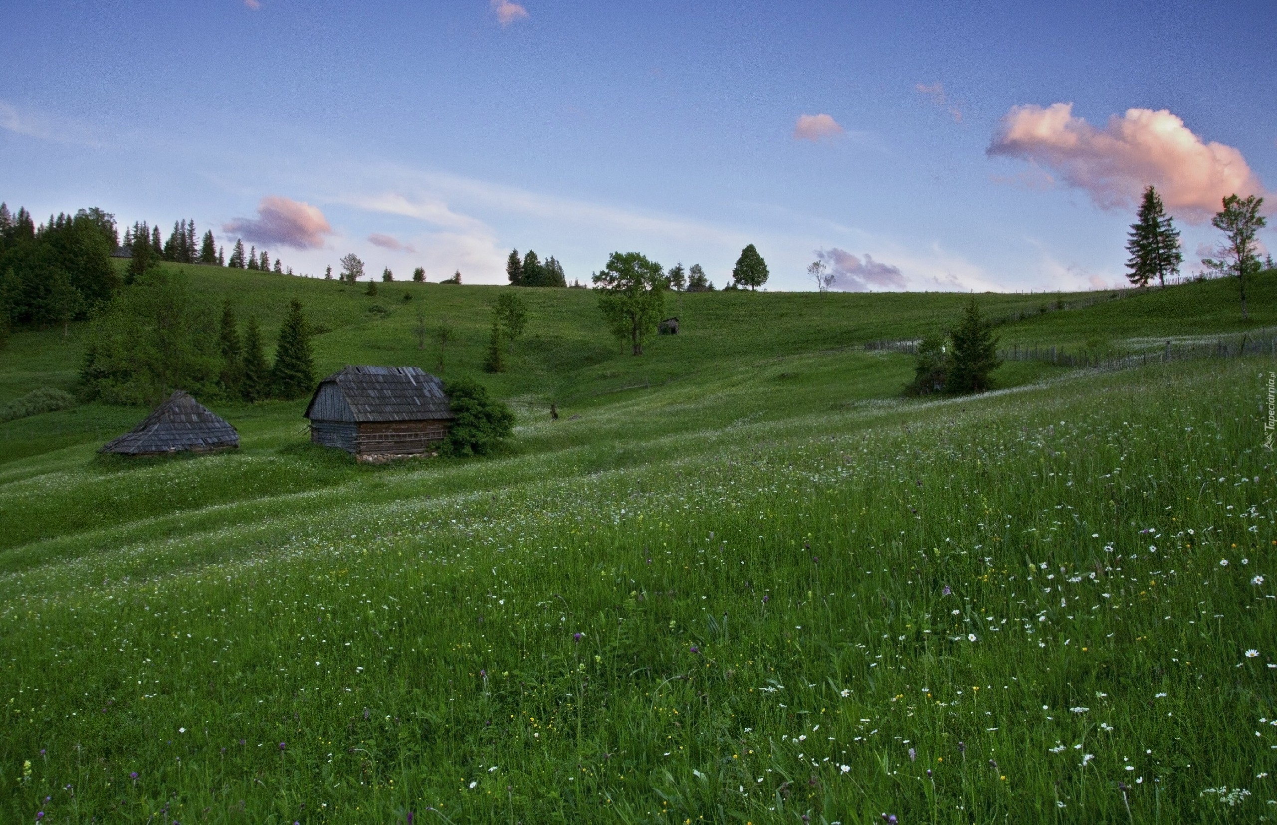 Edytor tapety: Łąka, Kwiatki, Szopy, Drzewa, Wiosna