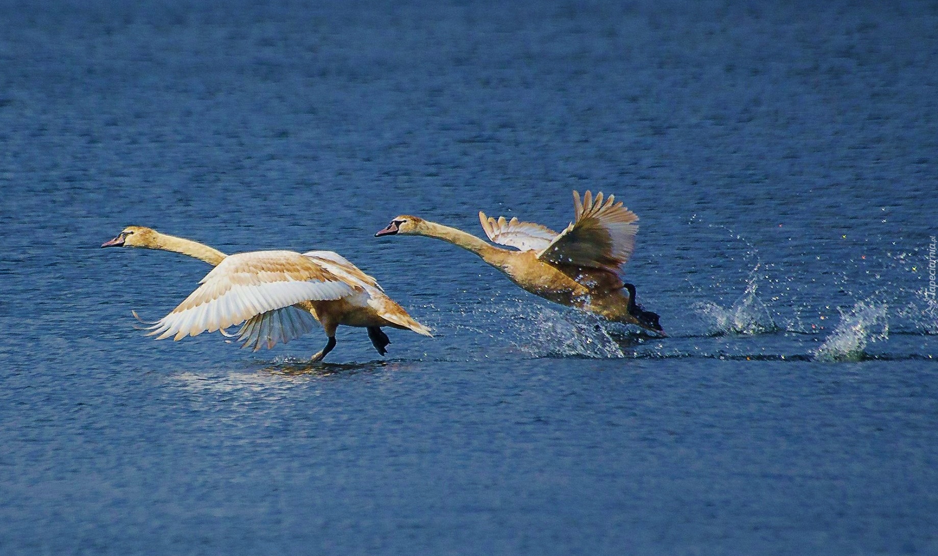Edytor tapety: Łabędzie. Skrzydła, Woda