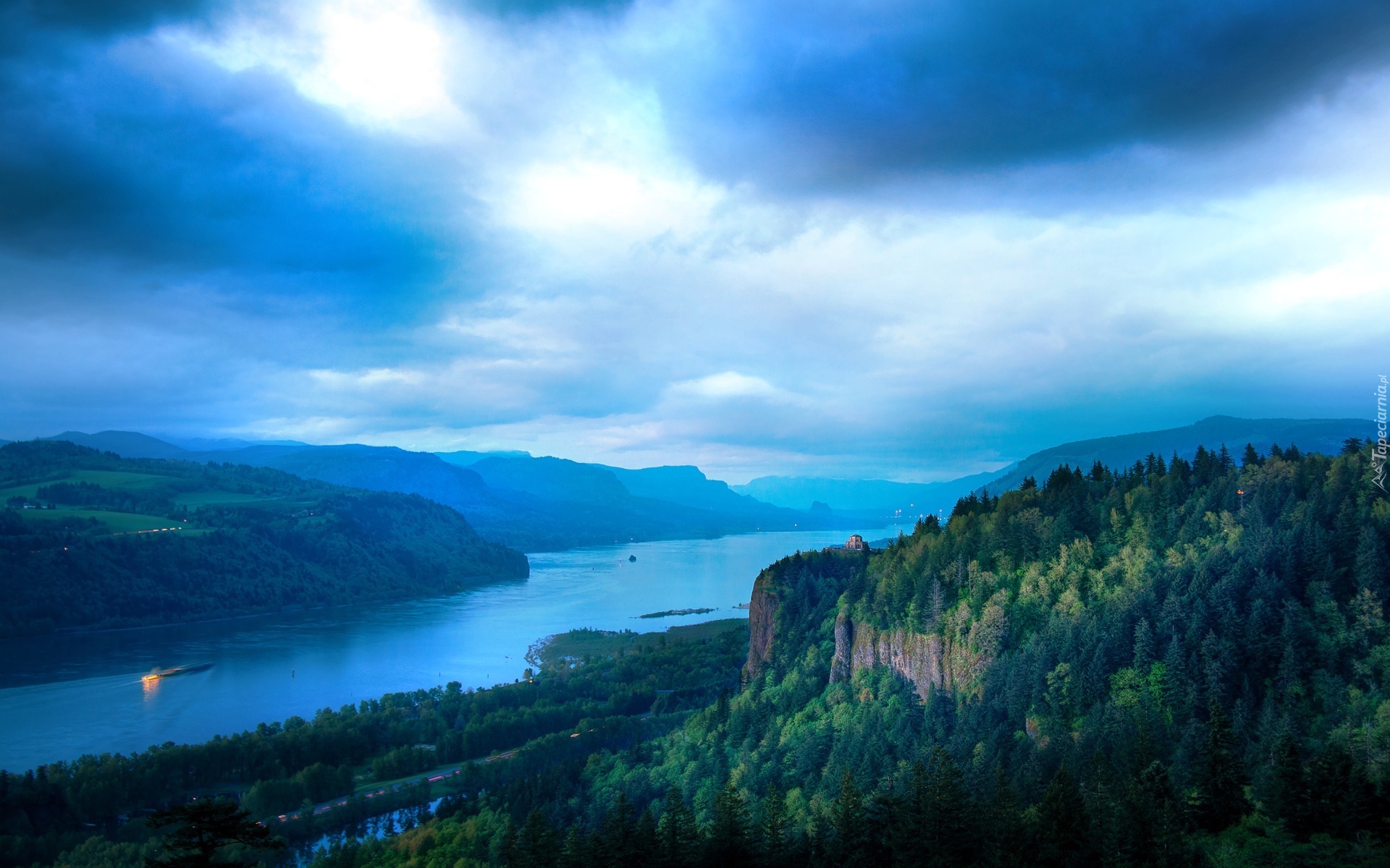 Edytor tapety: Góry, Lasy, Rzeka