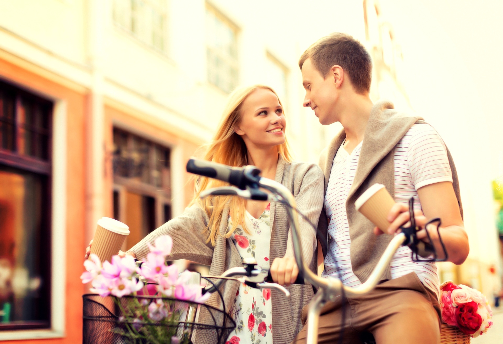 Edytor tapety: Kobieta, Mężczyzna, Rowery, Spojrzenie