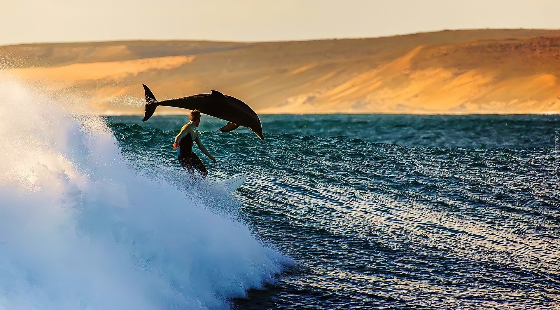Edytor tapety: Delfin, Fala, Windsurfing