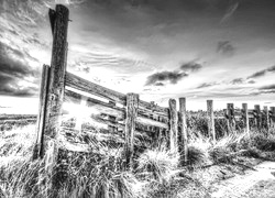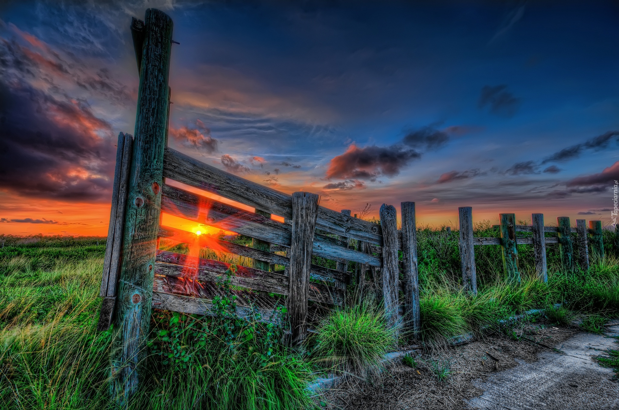 Edytor tapety: Łąka, Płotek, Zachód Słońca