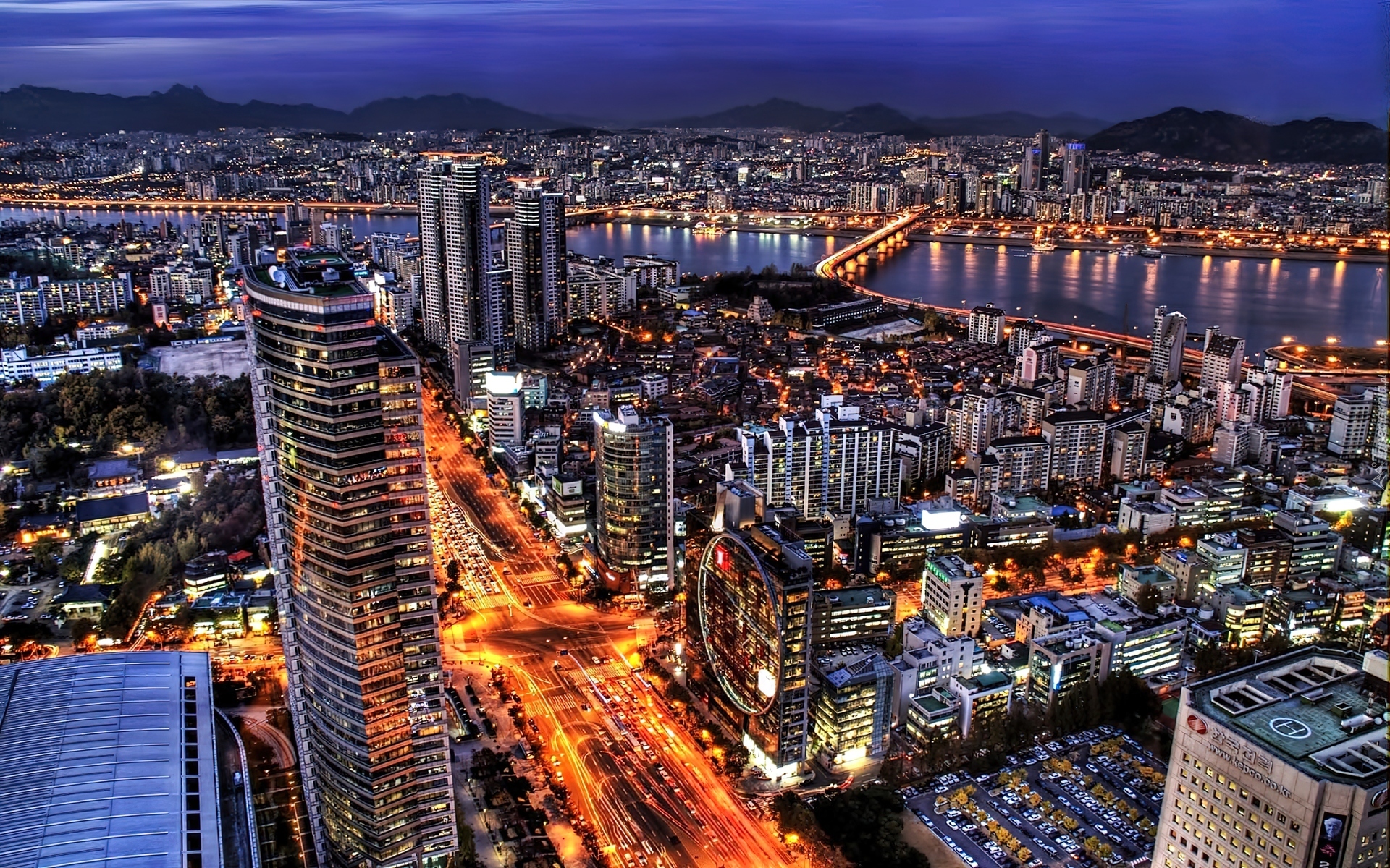 Edytor tapety: Meksyk, Panorama, Miasta, Nocą, Rzeka, Mosty
