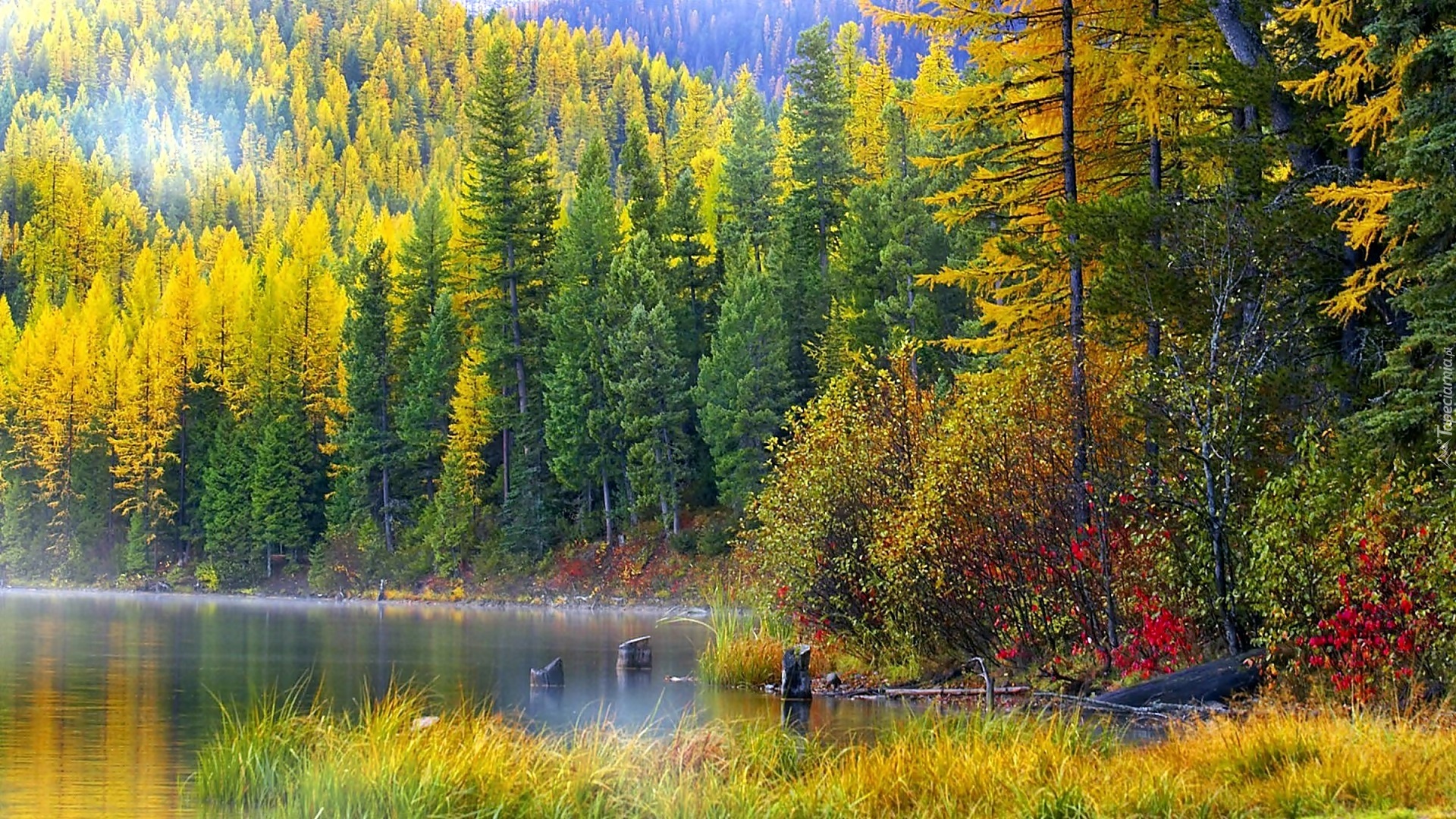 Edytor tapety: Jesień, Las, Jezioro, Mgła