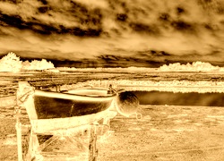 Edytor tapety: Łódka, Jeziorko, Chmury
