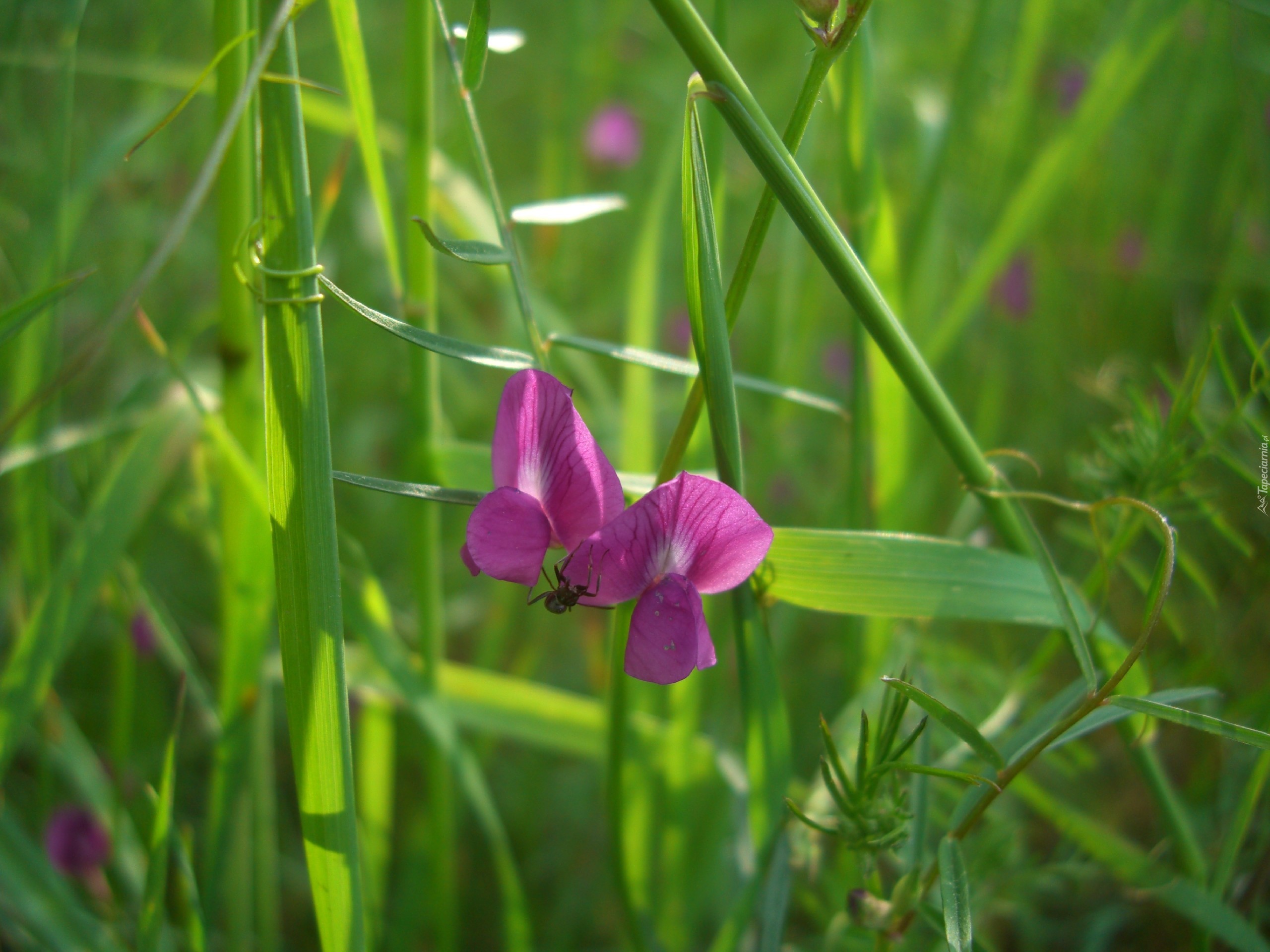 Edytor tapety: Wyka, Groch, Siewny, Kwiatki, Fioletowe, Trawy, Pajączek
