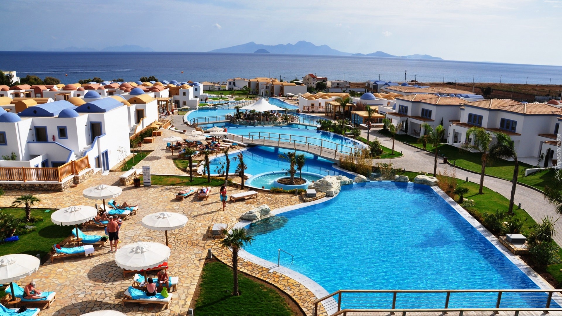 Edytor tapety: Hotel, Baseny, Morze, Grecja