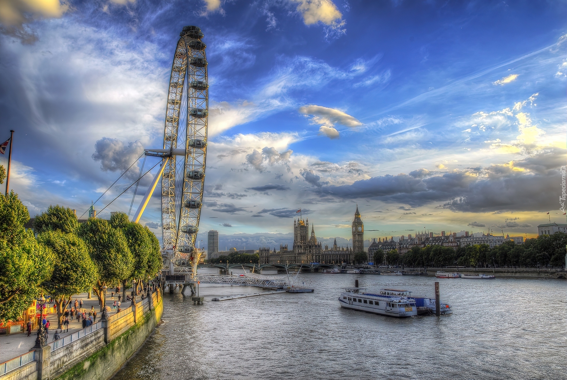 Edytor tapety: Londyn, Rzeka, Most, Barki, Koło, Widokowe, Big Ben